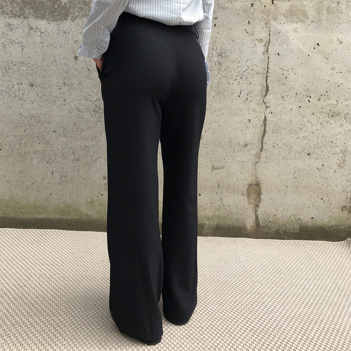 Disse klassiske sorte bukser er højtaljede og har en løstsiddende pasform med let vidde i benene.