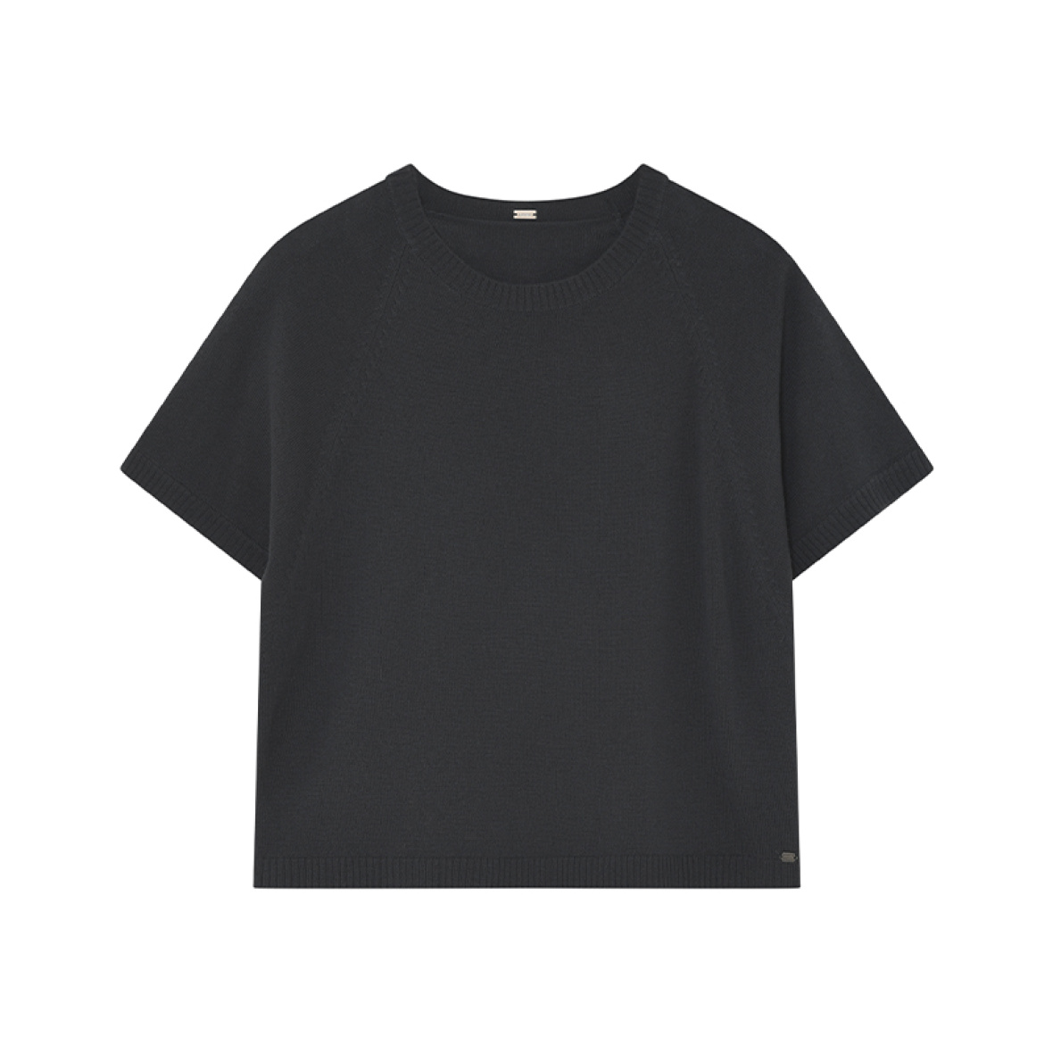 Den har korte ærmer, rund halsudskæring og fine ribkanter, der tilføjer et stilrent touch.