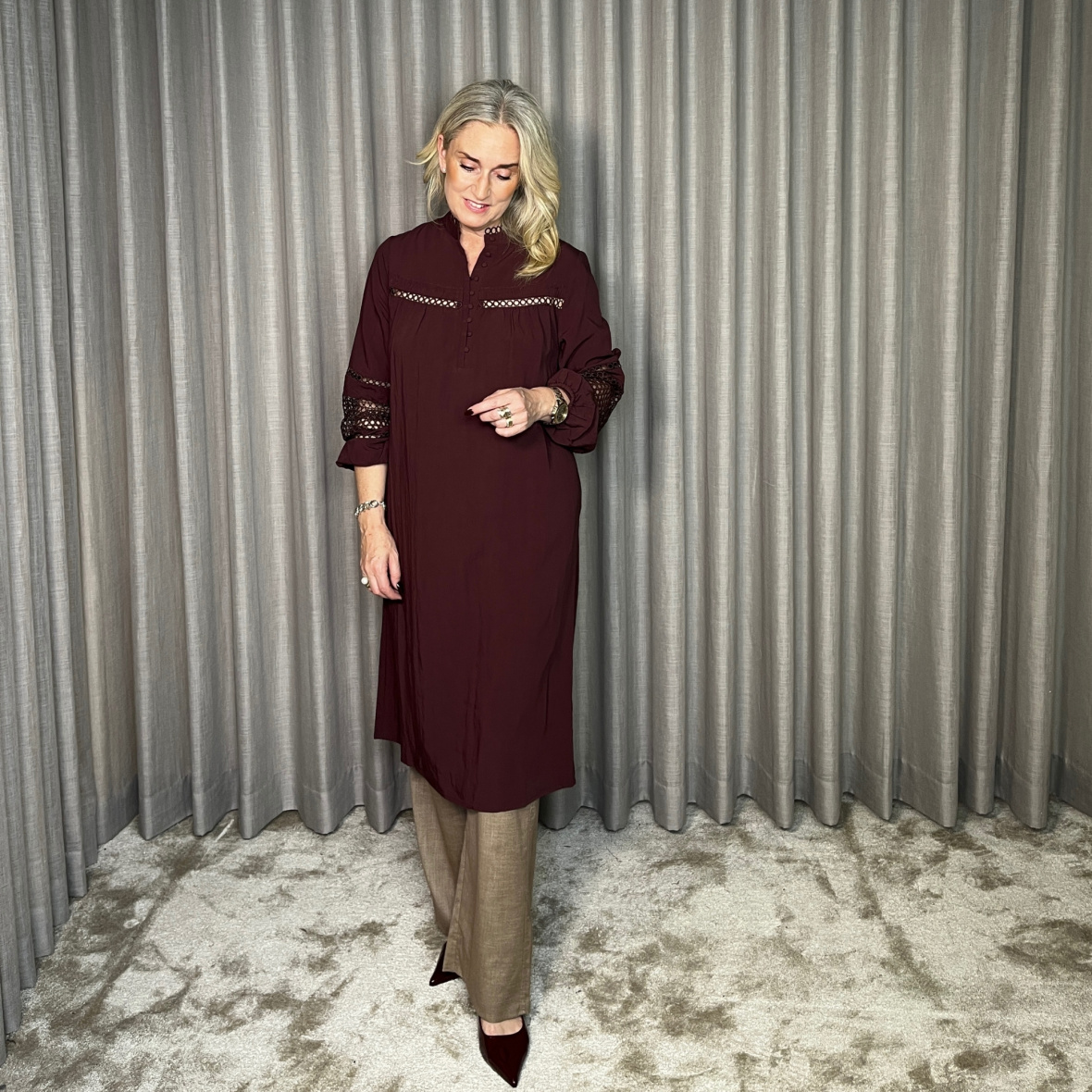 Kjole med dekorative blondedetaljer, afslappet pasform.