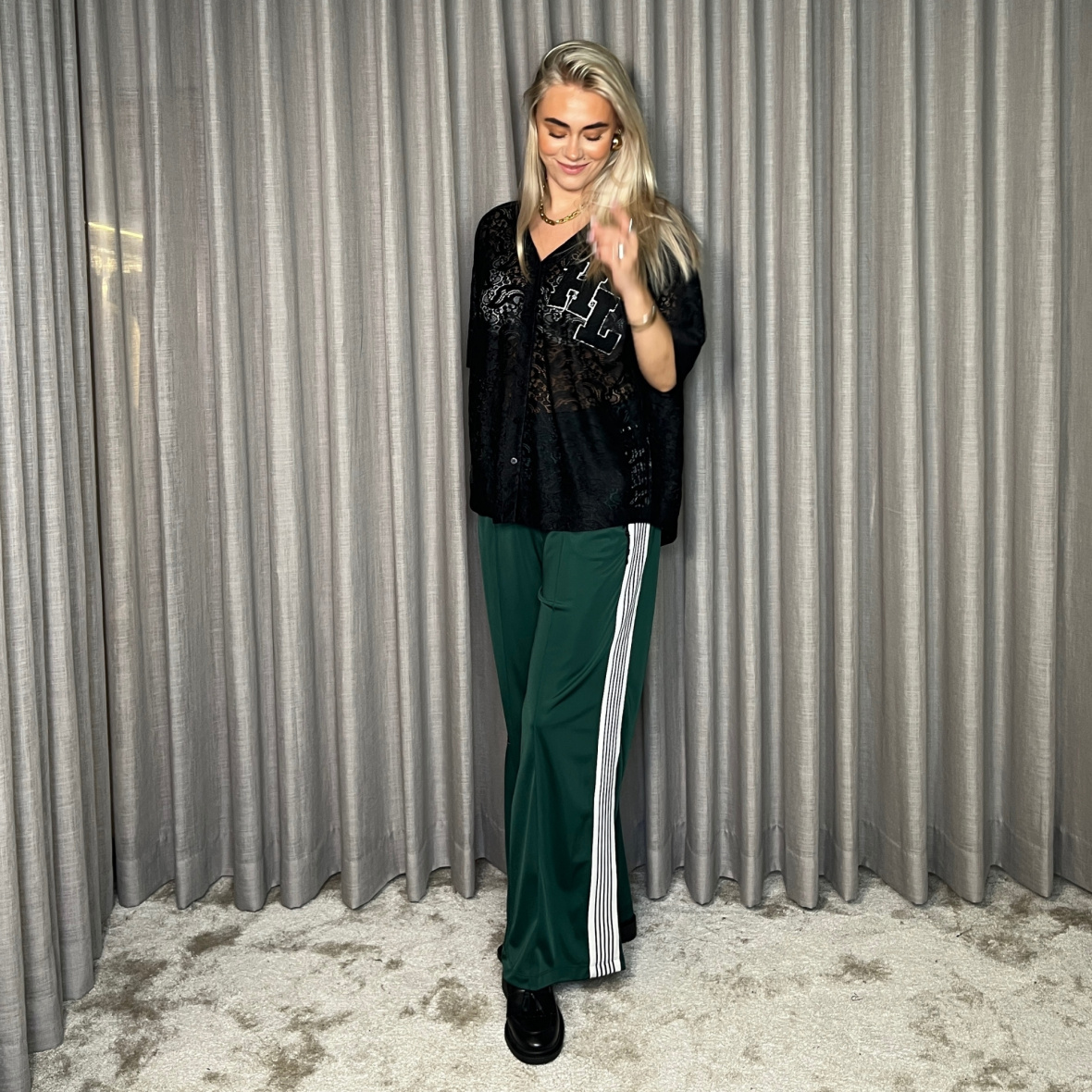 Den lette kvalitet falder flot og føles behagelig, mens blondedetaljerne giver et elegant og moderne udtryk.