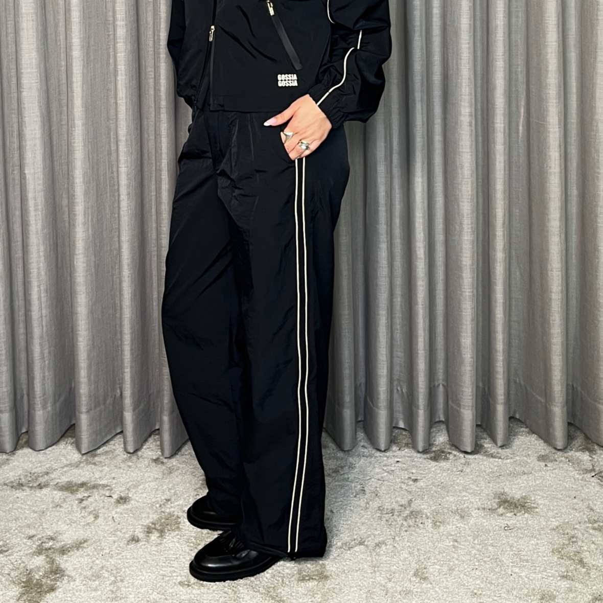 Sporty buks fra GOSSIA med bred elastik i taljen, piping-detaljer og justerbare ben.