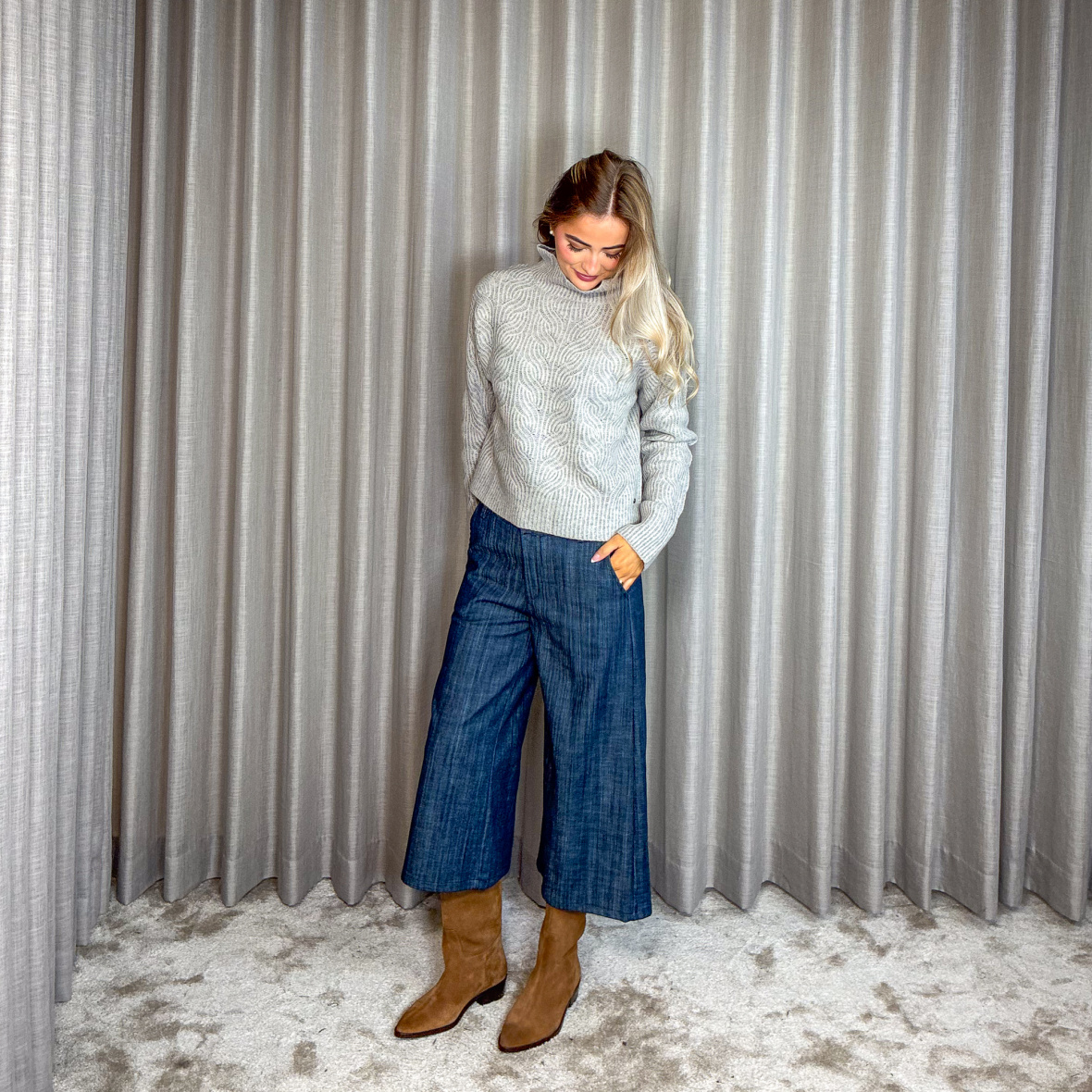 De brede ben og den let cropped længde giver et moderne udtryk, perfekt til både sneakers og sandaler.