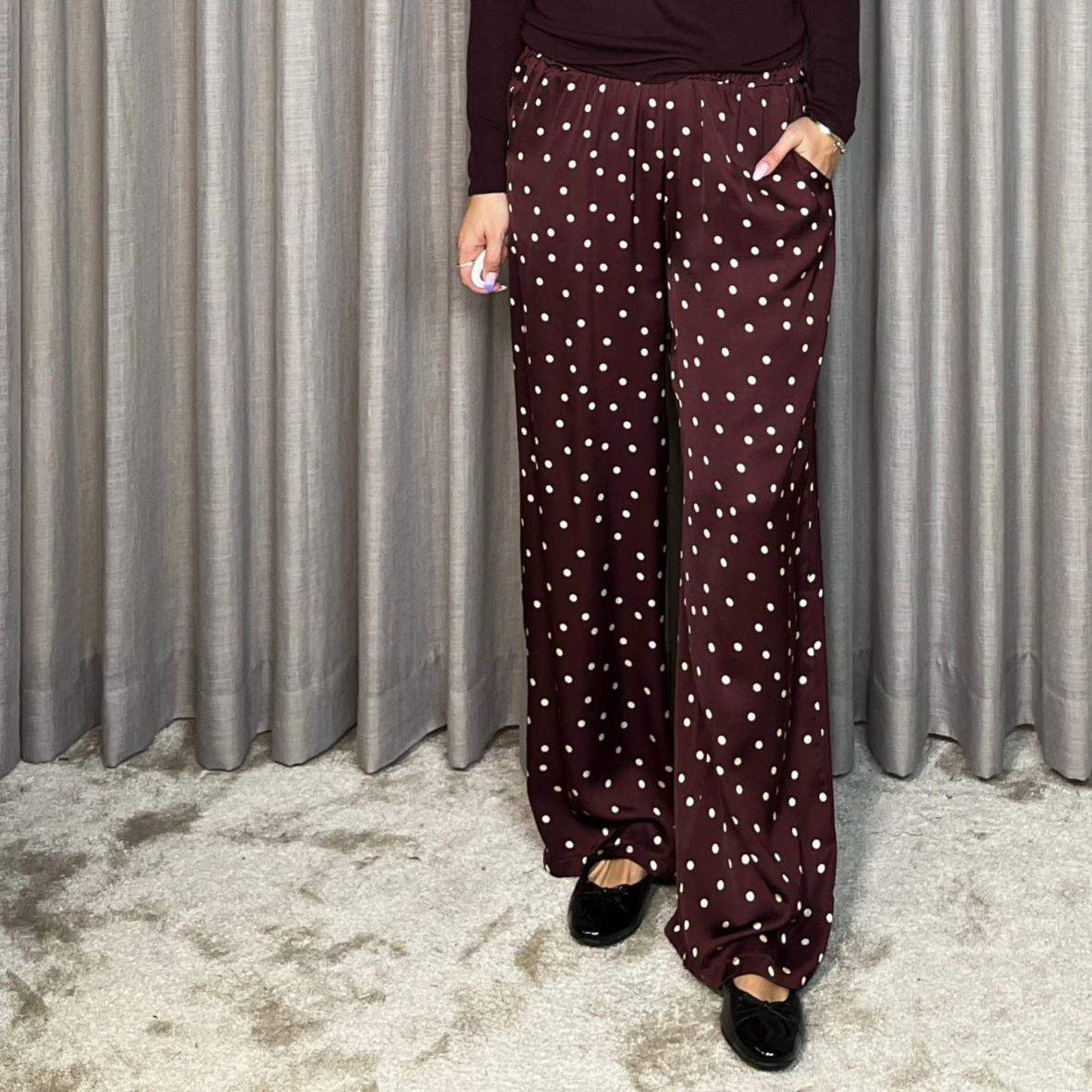 Prikkede bukser i blød satin med let elastik i taljen for en behagelig pasform.