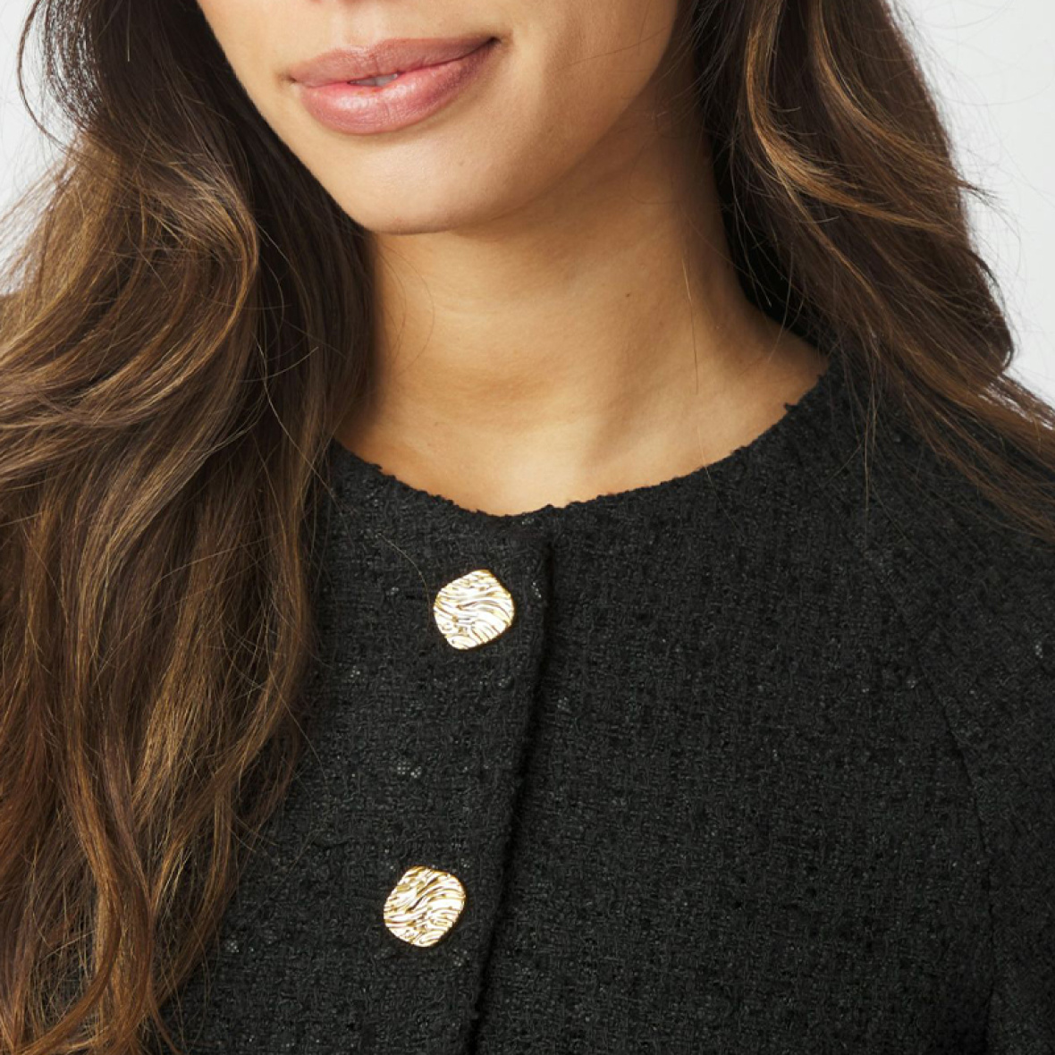 Den lækre, strukturerede kvalitet og guldknapper giver et luksuriøst touch.