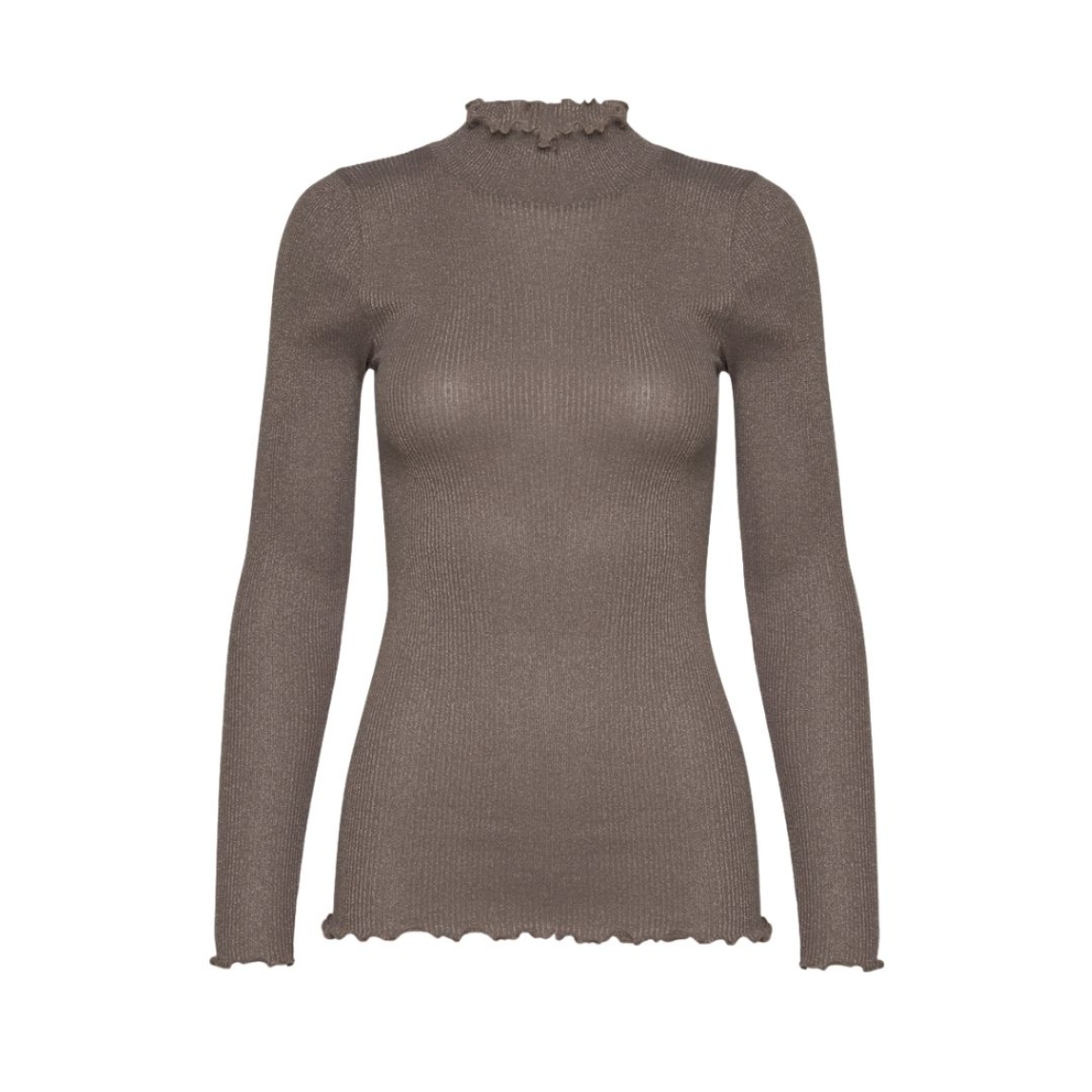 Boston Lurex LS T-neck T-shirt er en elegant bluse med fin krølkant ved hals og kant.