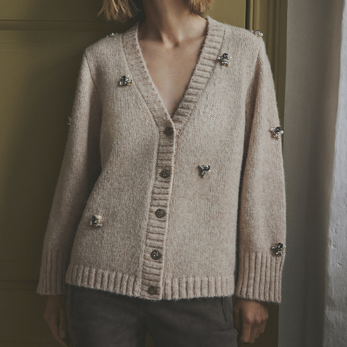 Miam Oversize cardigan er en skøn og eksklusiv cardigan i blød beige kvalitet med bomuld, alpaka og uld.