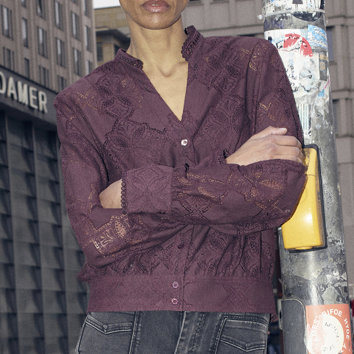 De fine detaljer ved hals og ærmer gør den perfekt til både hverdag og mere elegante looks.