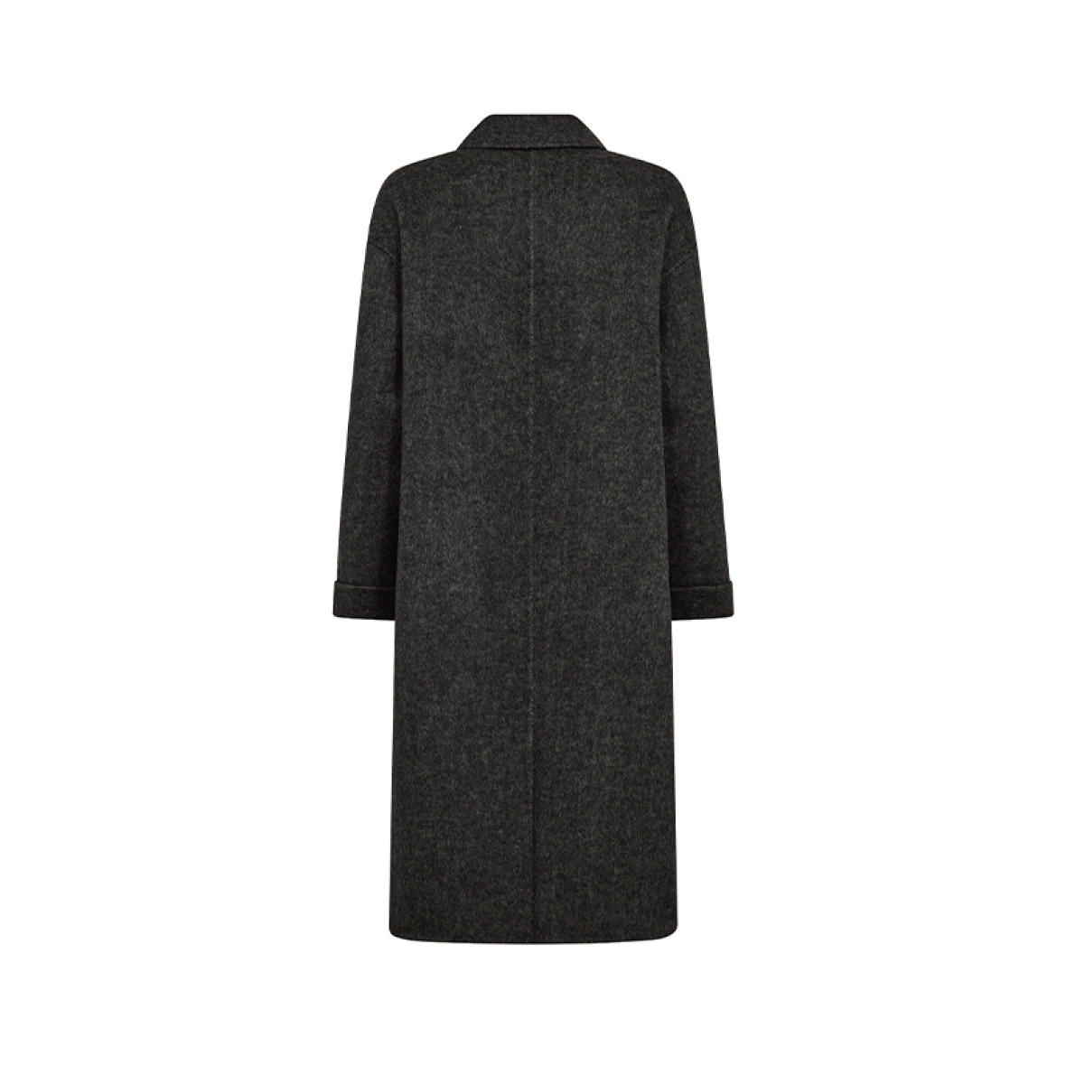 Smuk klassisk uldfrakke i elegant melange mønster med krave, knaplukning og praktiske lommer.