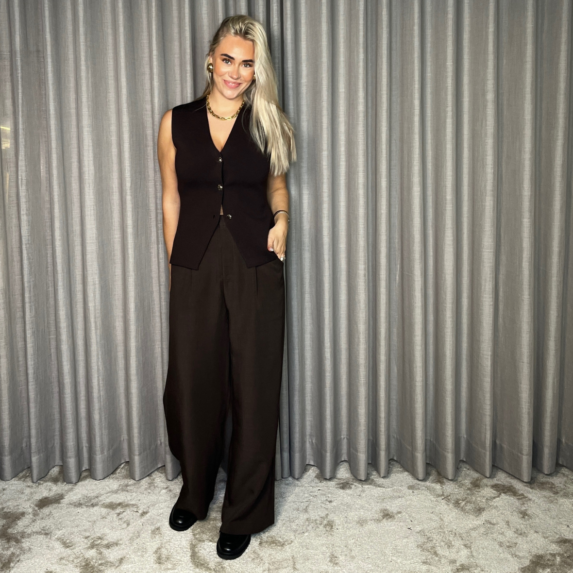 De har sidelommer og en diskret lukning med hægte, knap og lynlås, og benene falder lige for et stilrent og afslappet look.