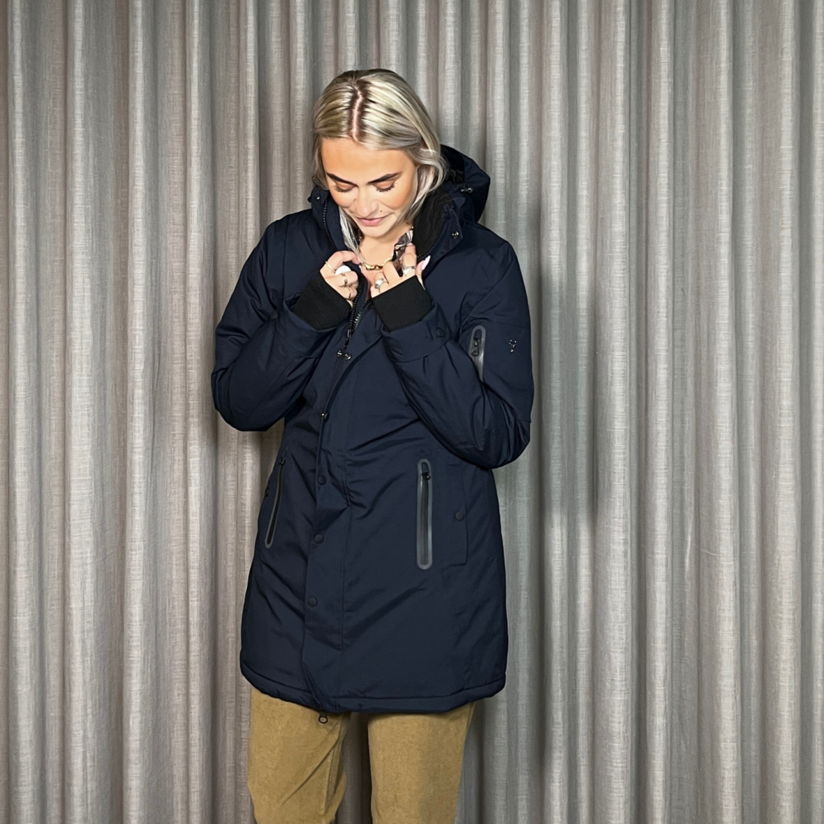 Vand- og vindtæt med lynlåslommer, inderlommer og vindfang ved ærmerne, perfekt til kolde vinterdage helt ned til -20 grader.