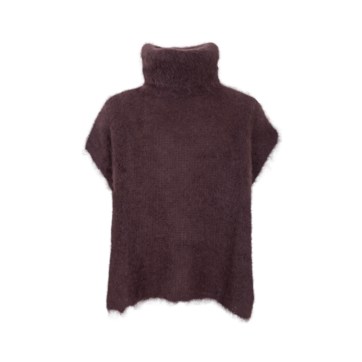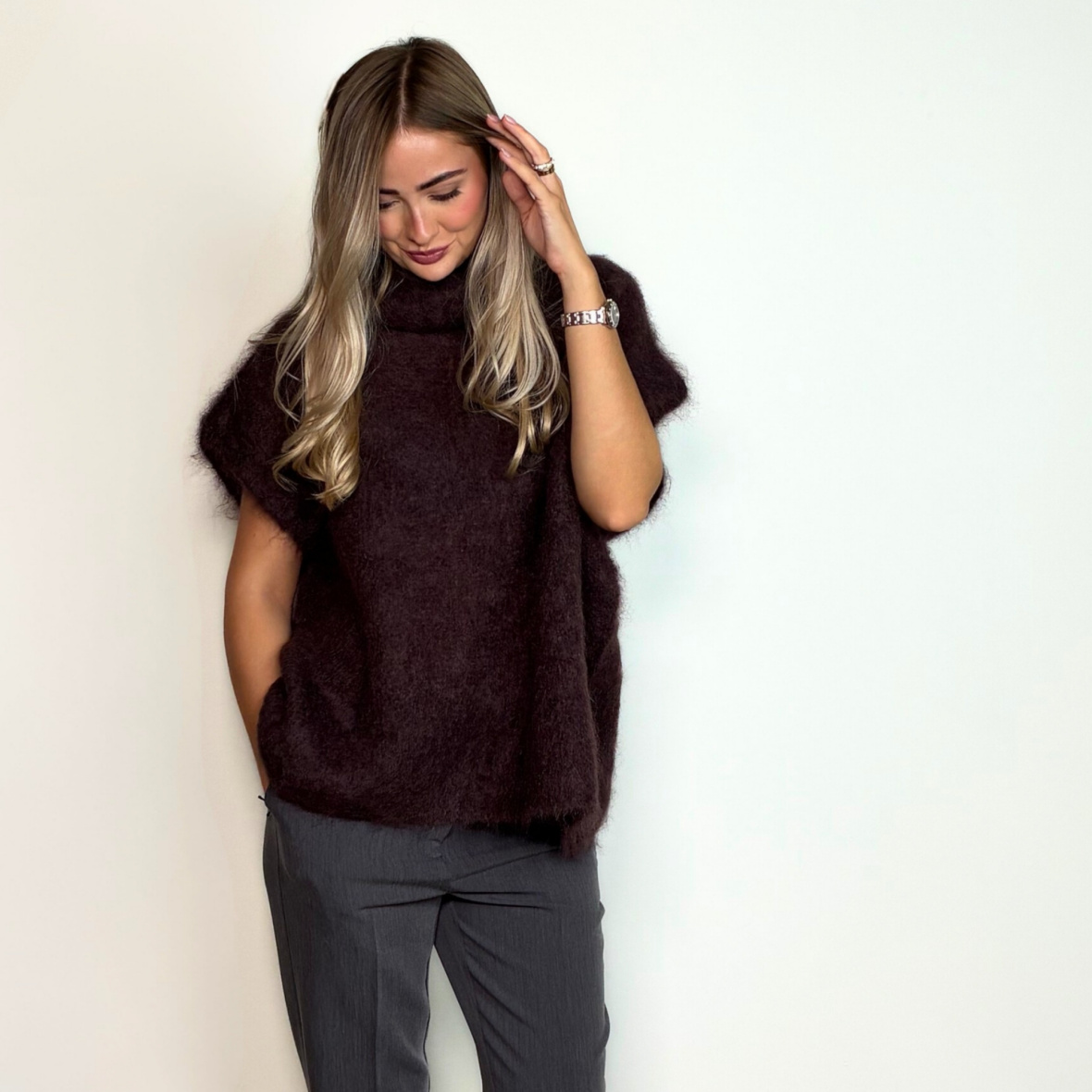 Hyggelig oversized strikvest med rullekrave. Blød og varm, perfekt til lag-på-lag styling på kølige dage.