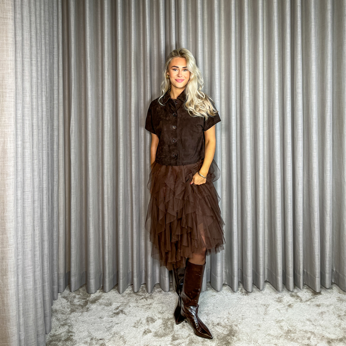 Denne smukke kortærmede ruskindsjakke fra BTC-CPH er et elegant valg til dig, der elsker klassiske materialer med et moderne twist.