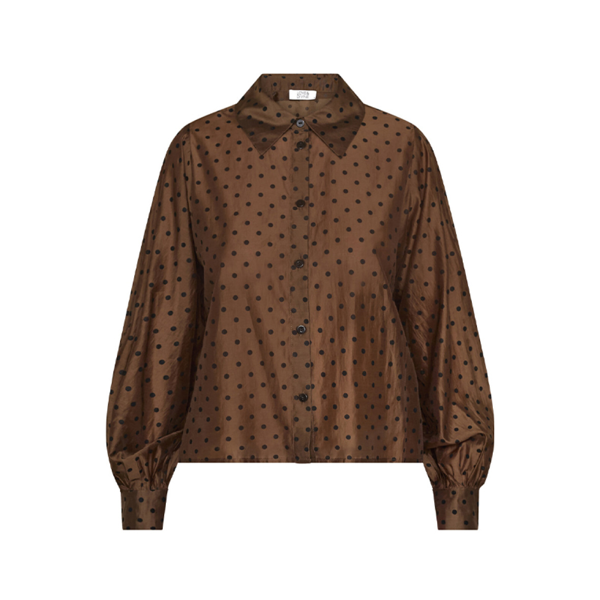 Love1206-2 skjorten er designet med et stilfuldt prikket mønster og en klassisk krave.