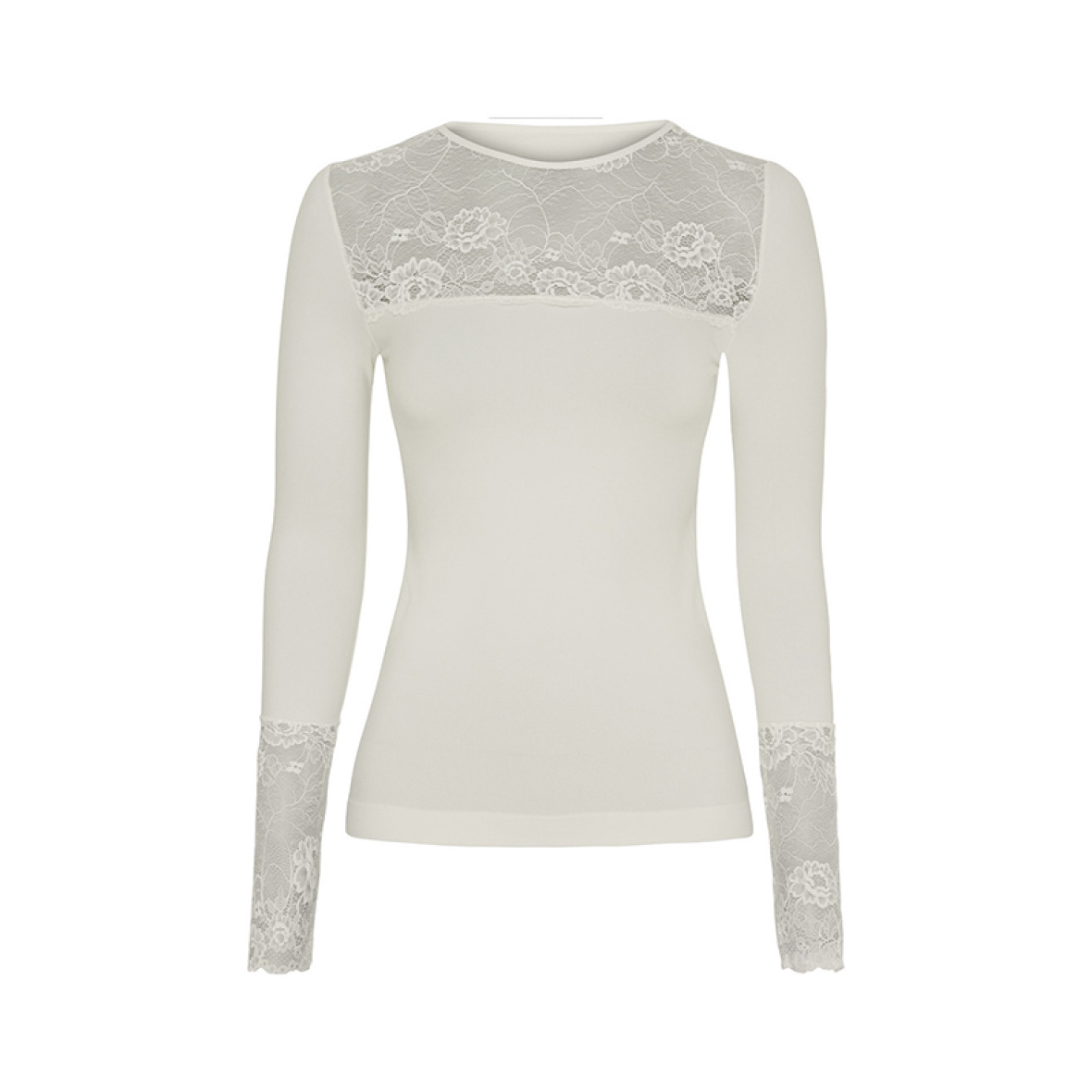 Blusen har smukke blondedetaljer ved bryst og ærmer, som giver et feminint udtryk.