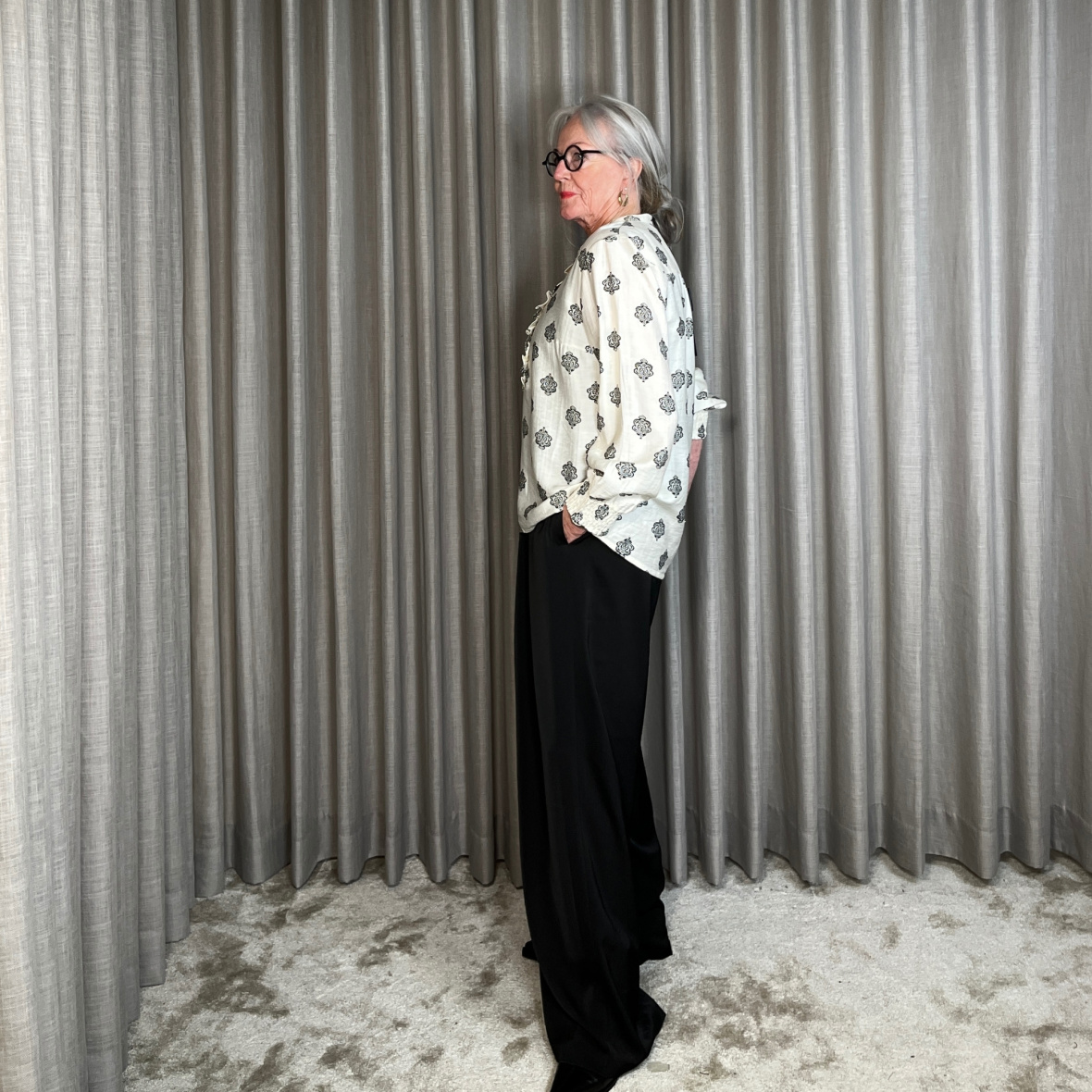 Den løstsiddende pasform gør den behagelig og let at style til både hverdag og fest.