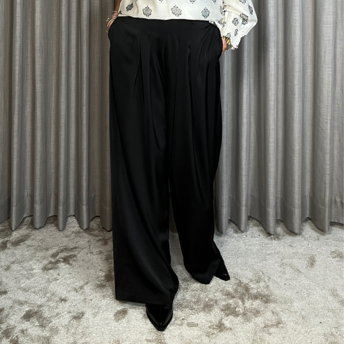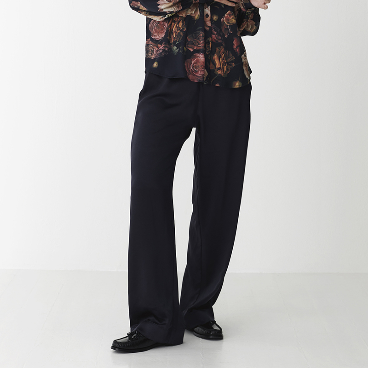 Pasformen er løs og afslappet, hvilket giver et elegant og ubesværet look.