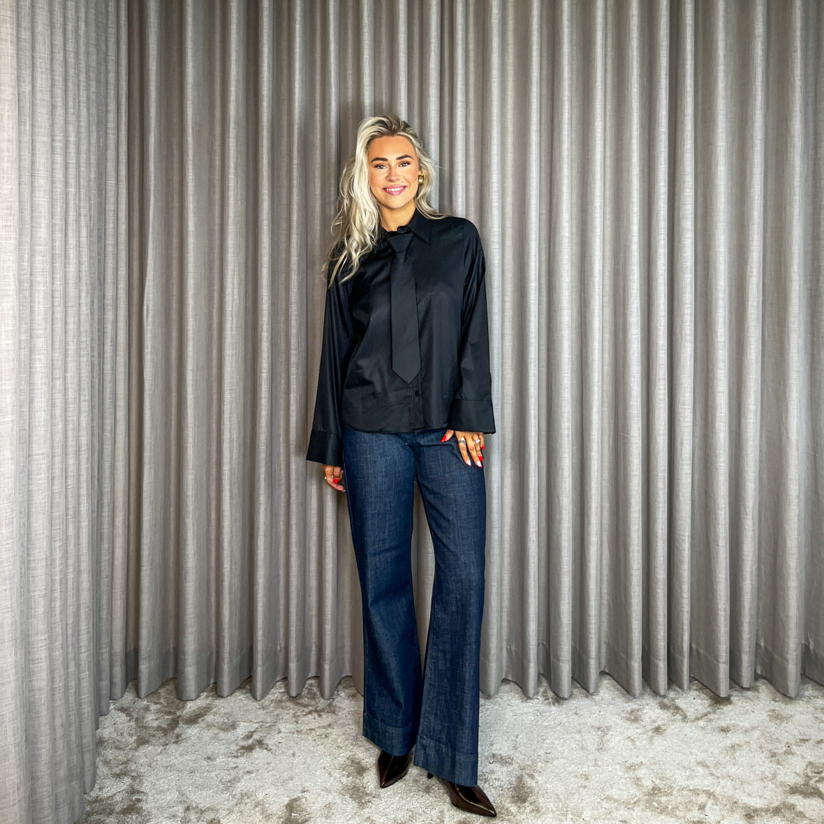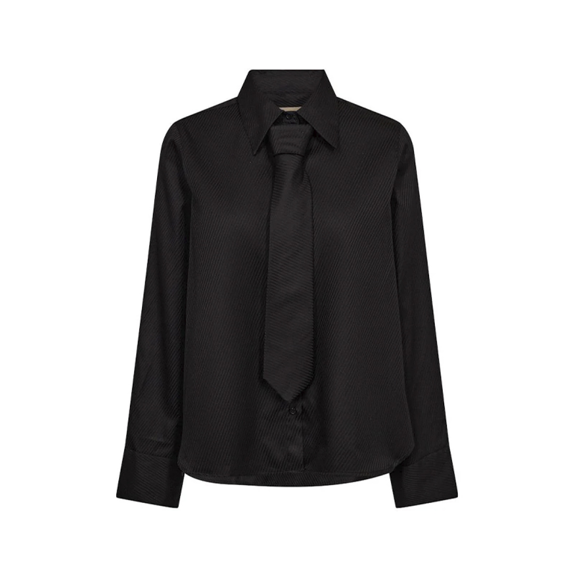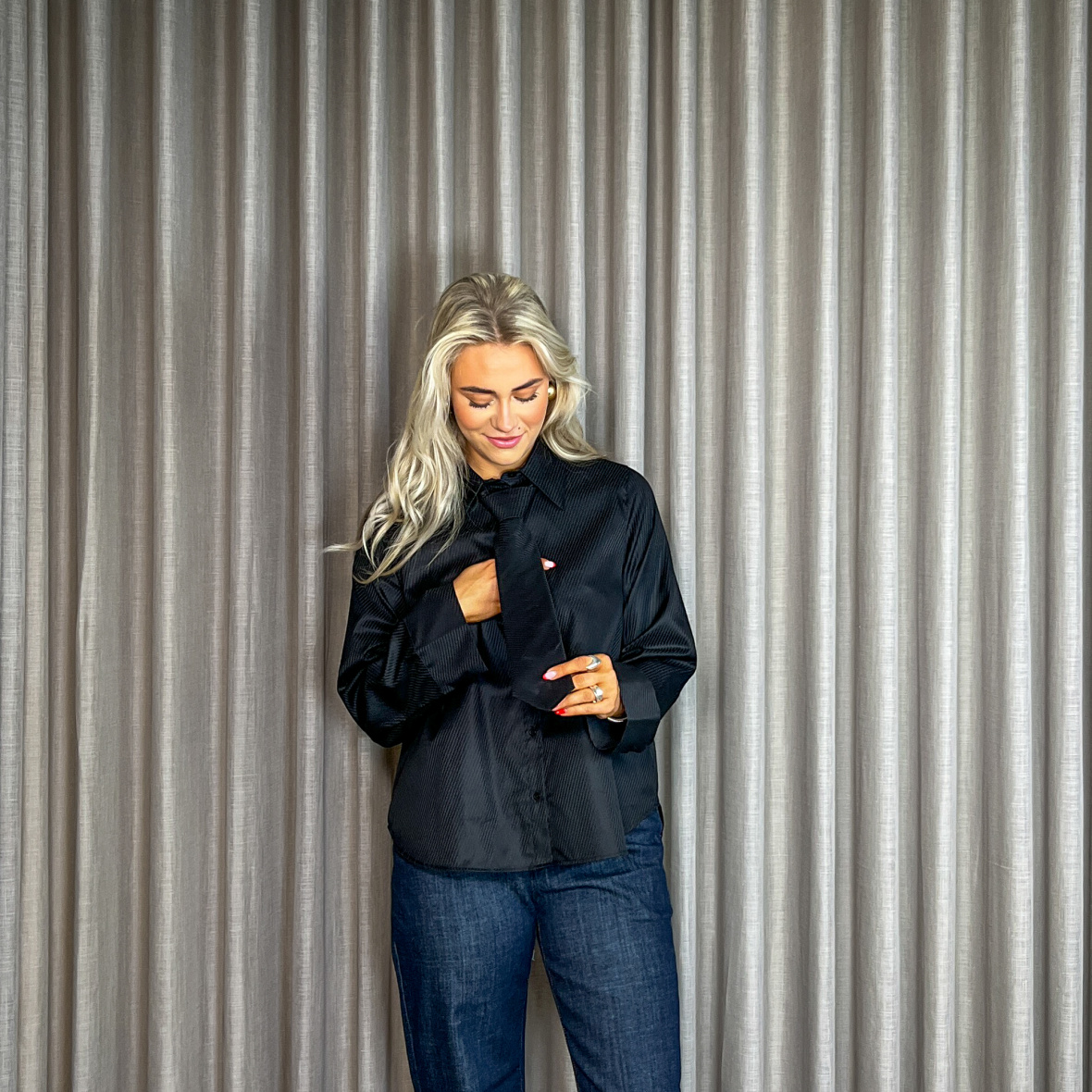 Sort skjorte fra Mos Mosh med tone-i-tone striber i stoffet.
