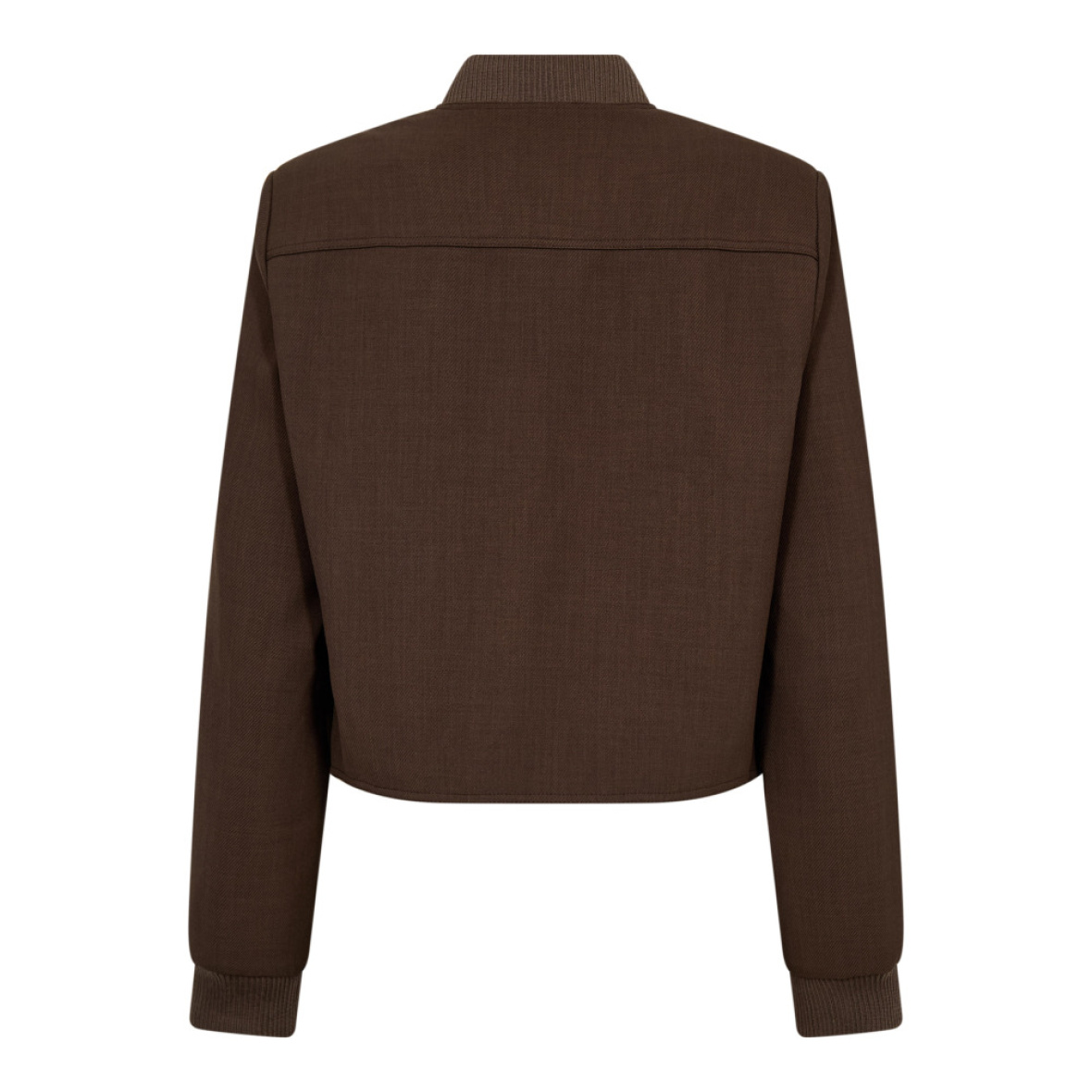 Denne brune jakke er en elegant fortolkning af den klassiske bomberjakke.