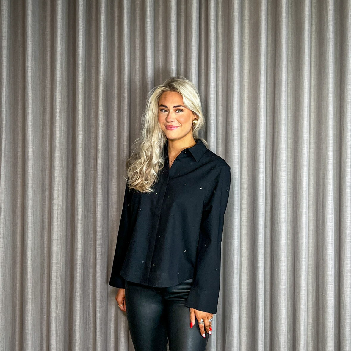 Elegant sort skjorte med funklende sorte rhinsten der giver et ekstra look.