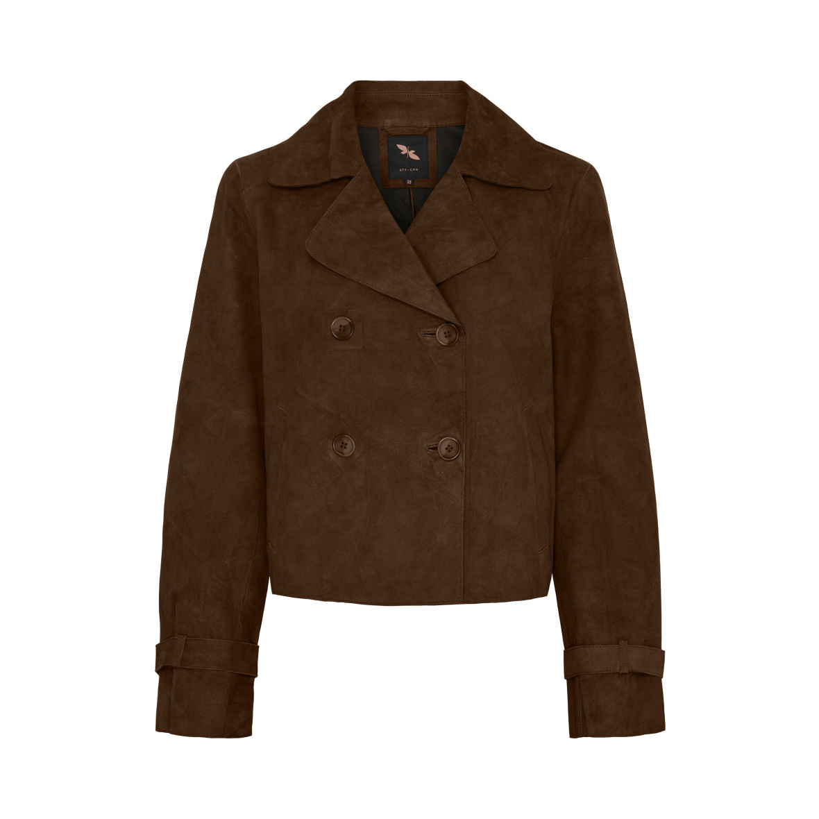 Jakken har flotte knapper, en lomme i hver side og stilfulde detaljer omkring ærmerne, der giver et unikt og feminint touch.