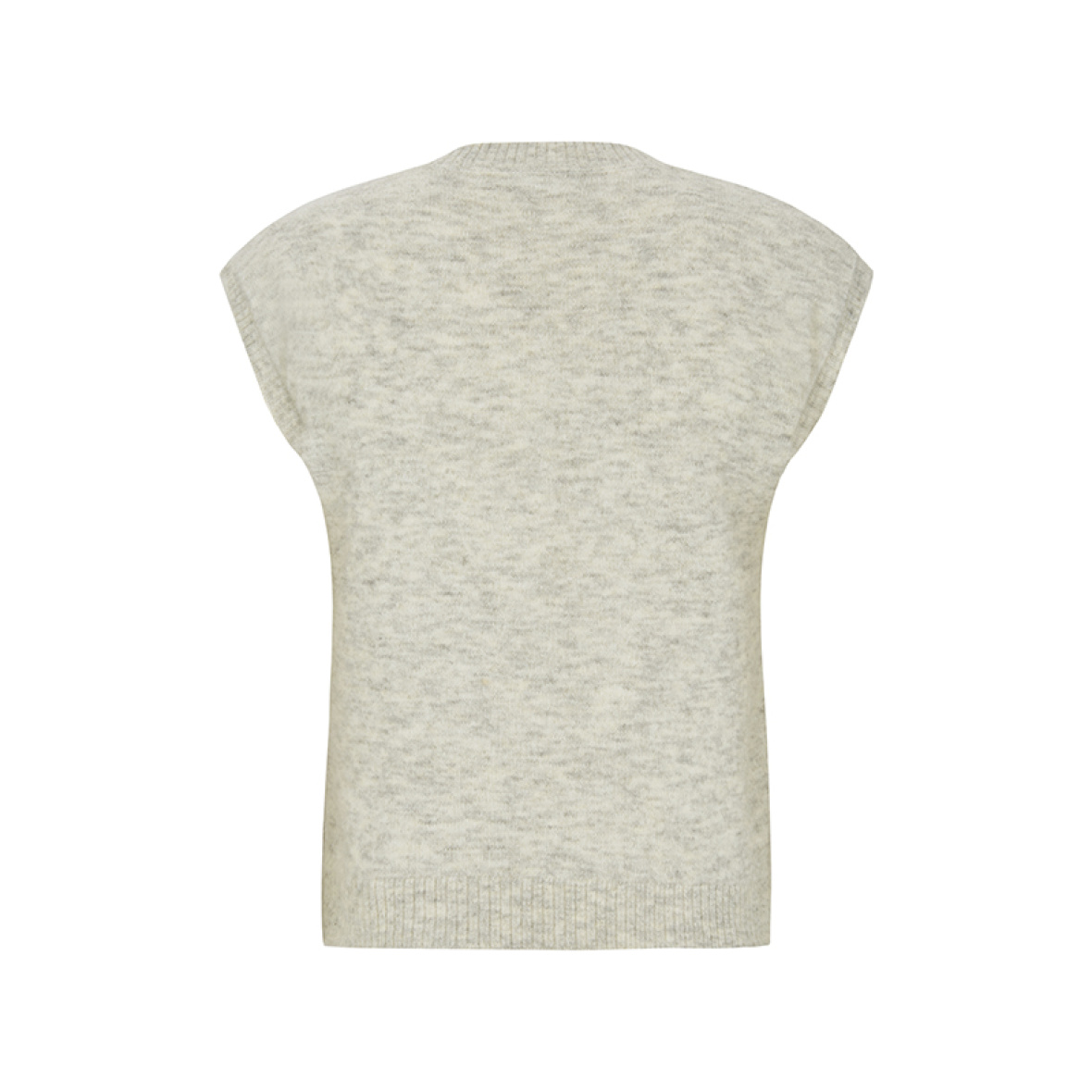 Vesten har en flot v-udskæring, brede skuldre og en klassisk ribkant forneden, som giver et rent og moderne udtryk.