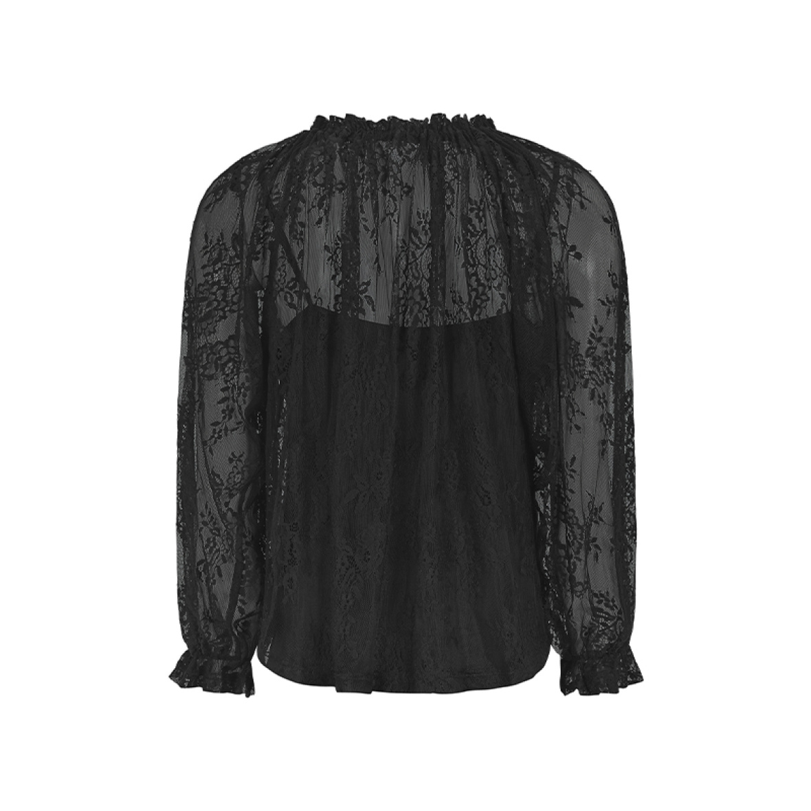 Blusen er fremstillet i let og gennemsigtigt blondestof med fine detaljer, der giver et eksklusivt og sofistikeret look.