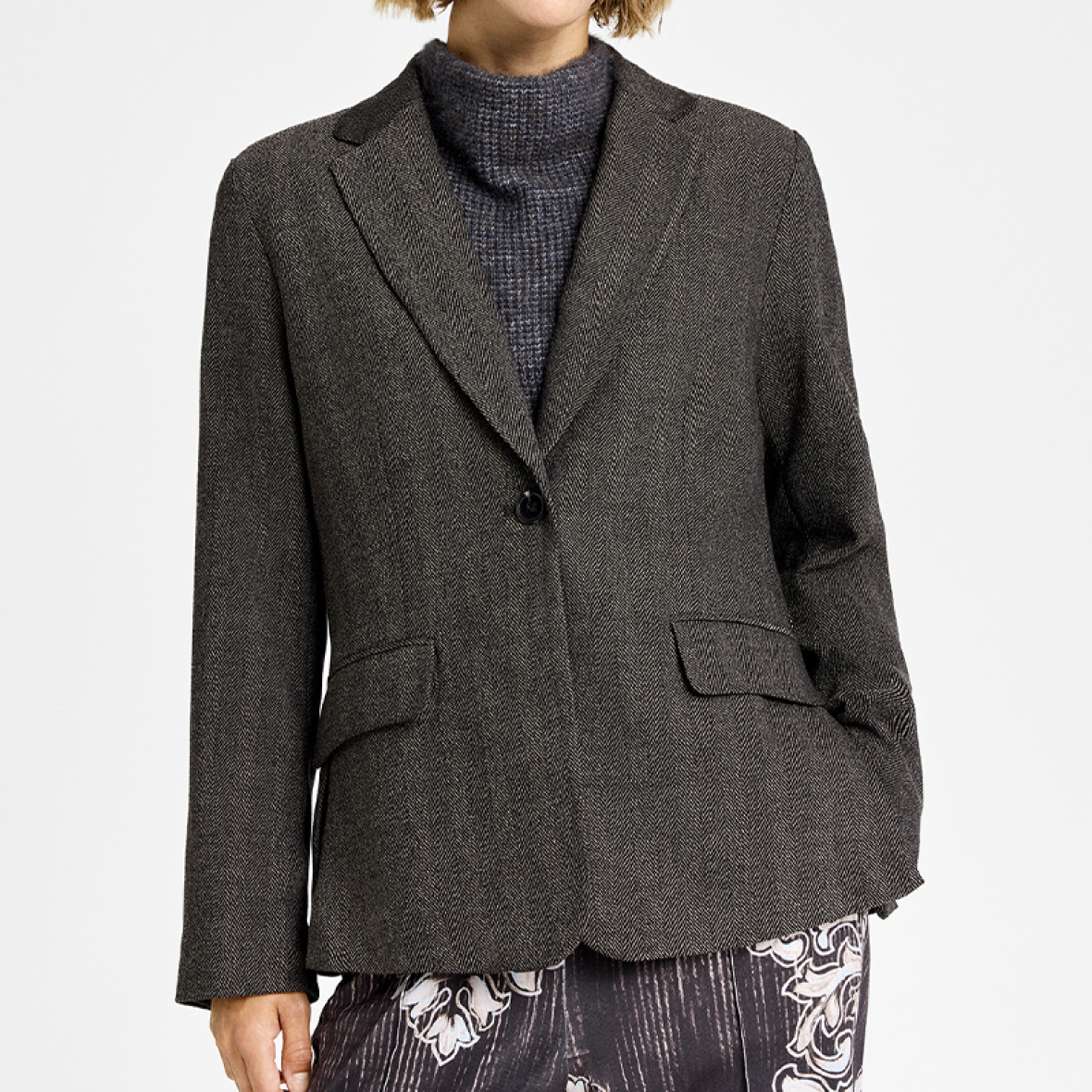 Blazeren har hakrevers, enknapslukning og klaplommer.