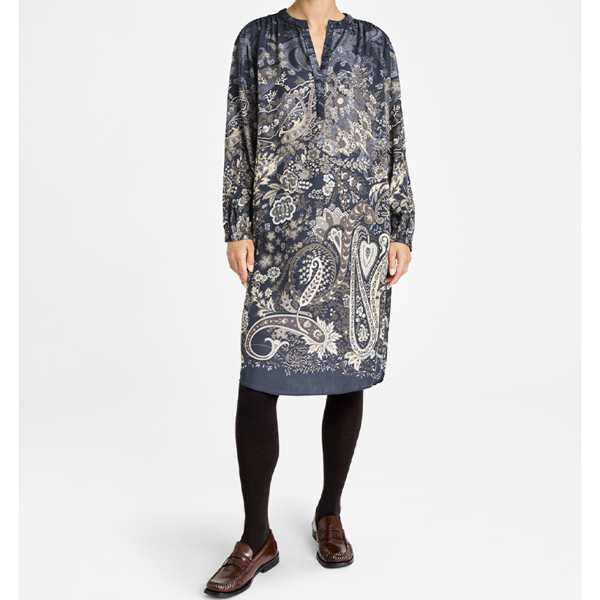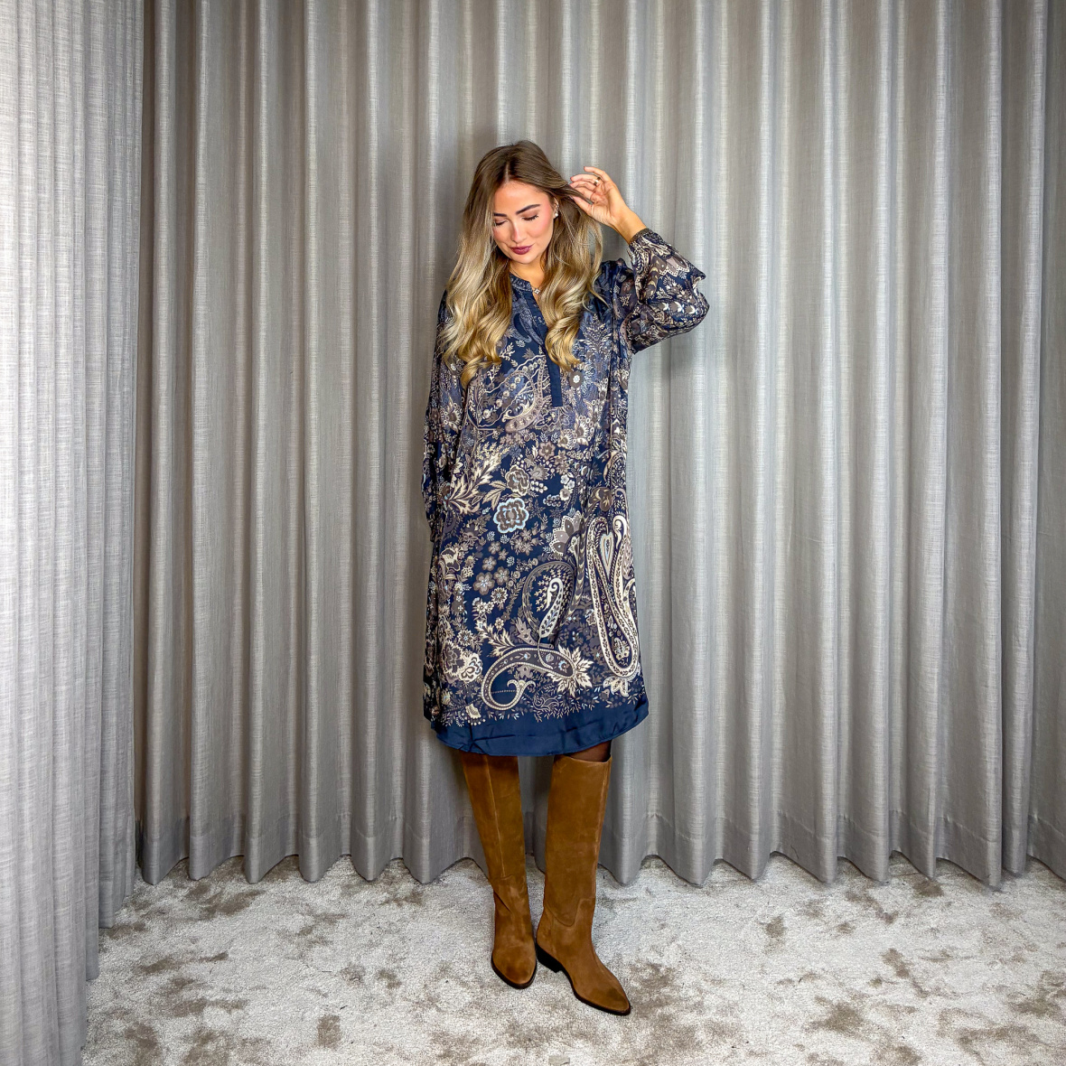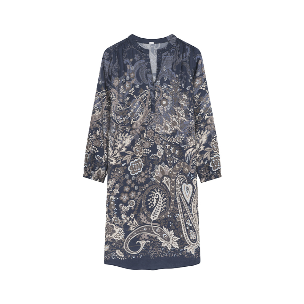 Smuk mørkeblå Sikka kjole fra Gustav med elegant paisleyprint.