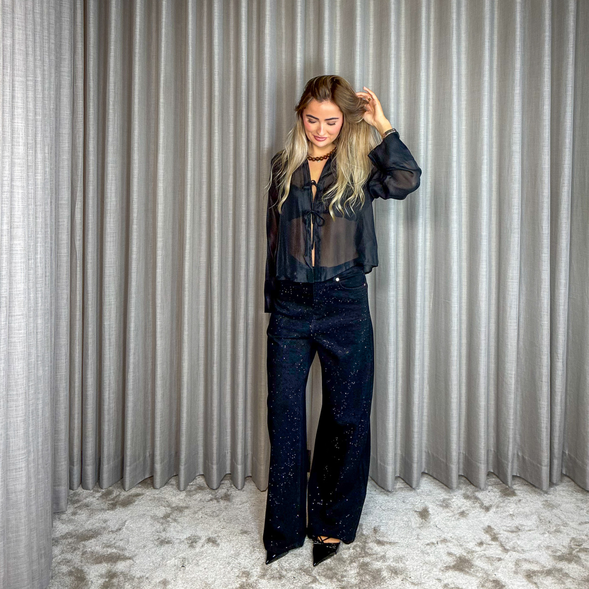 Elegant sort nimba organza skjorte fra Haute L'amitié i let transparent kvalitet.