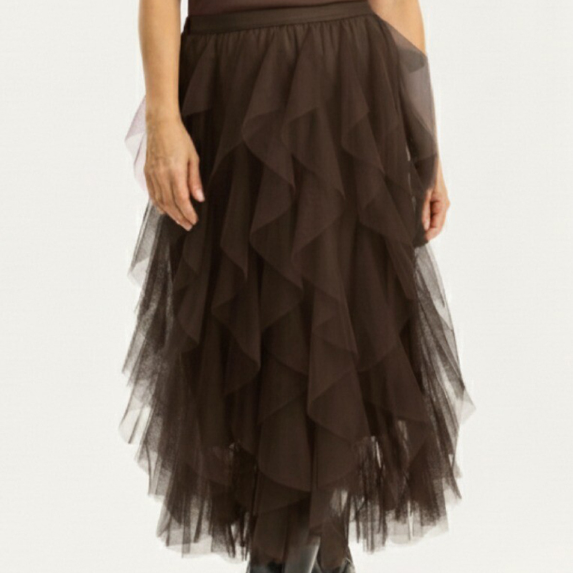 Skørtet er designet i flere lag af let, gennemsigtig tyl, som giver en flot volumen og et romantisk udtryk.