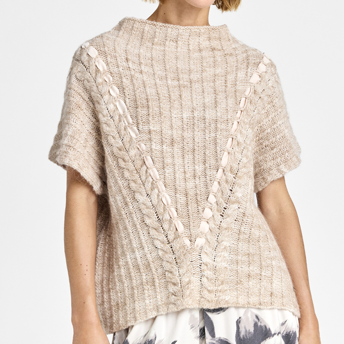 Blusen er strikket i en blød og let kvalitet og har et flot ribmønster med kabeldetaljer.