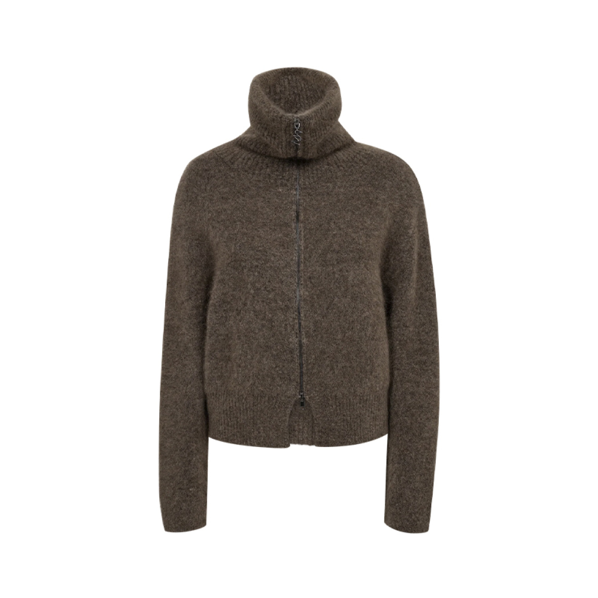 Den har høj hals og tovejs-lynlås, som giver et moderne og sporty udtryk.