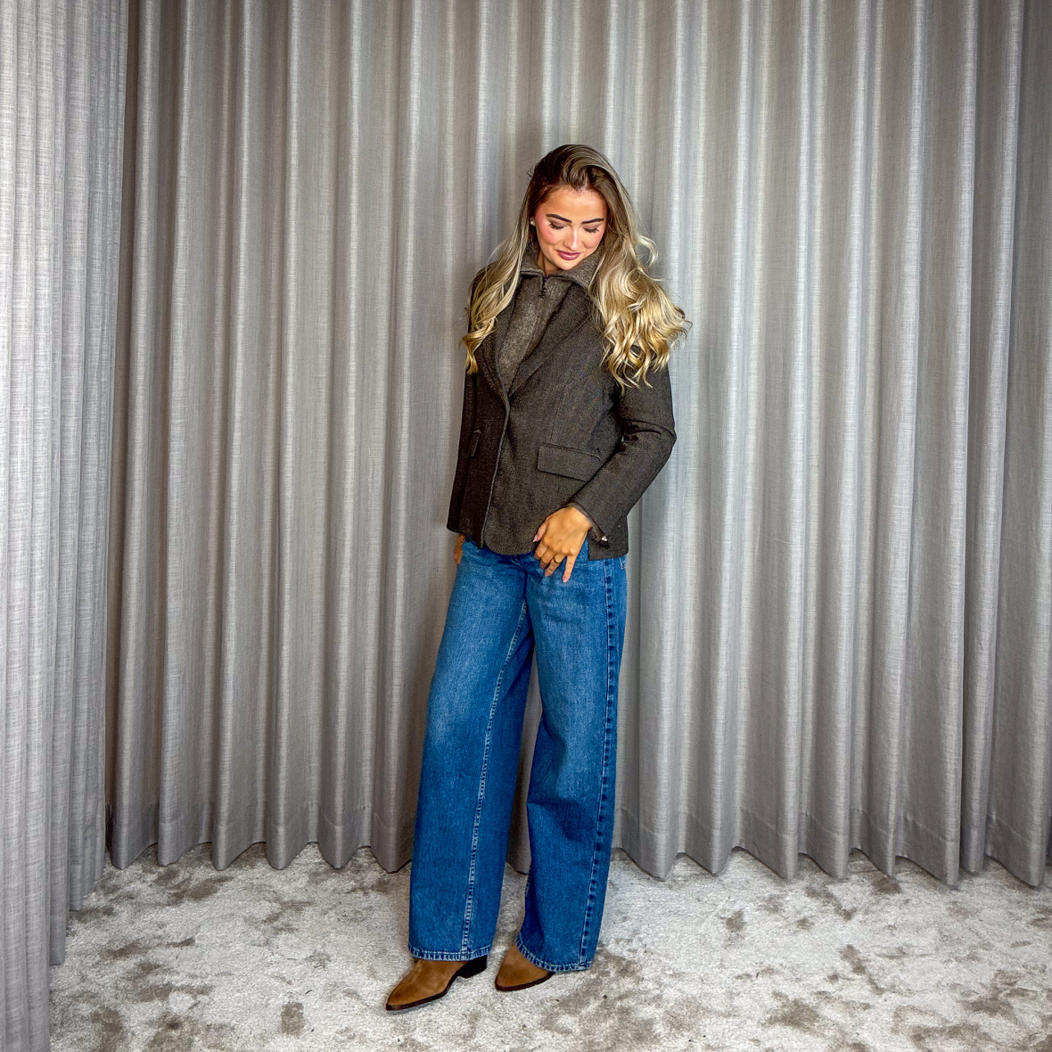 Brug den lukket for et stilrent look eller åben over en T-shirt for en afslappet hverdagstil.