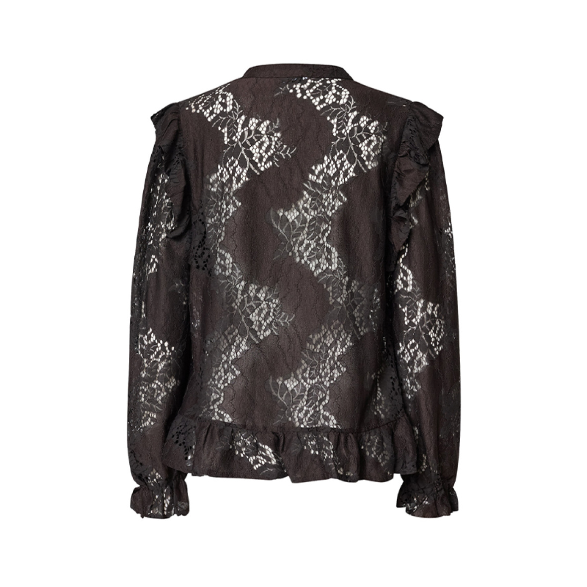 Love1234-3 fra Love & Divine er en løs og feminin bluse med et smukt blondeprint.