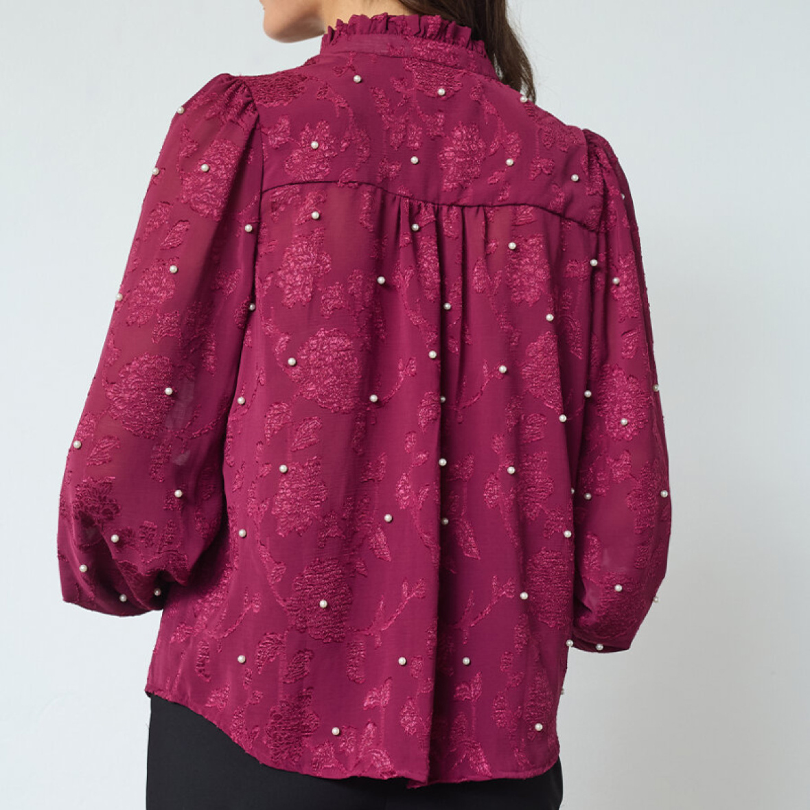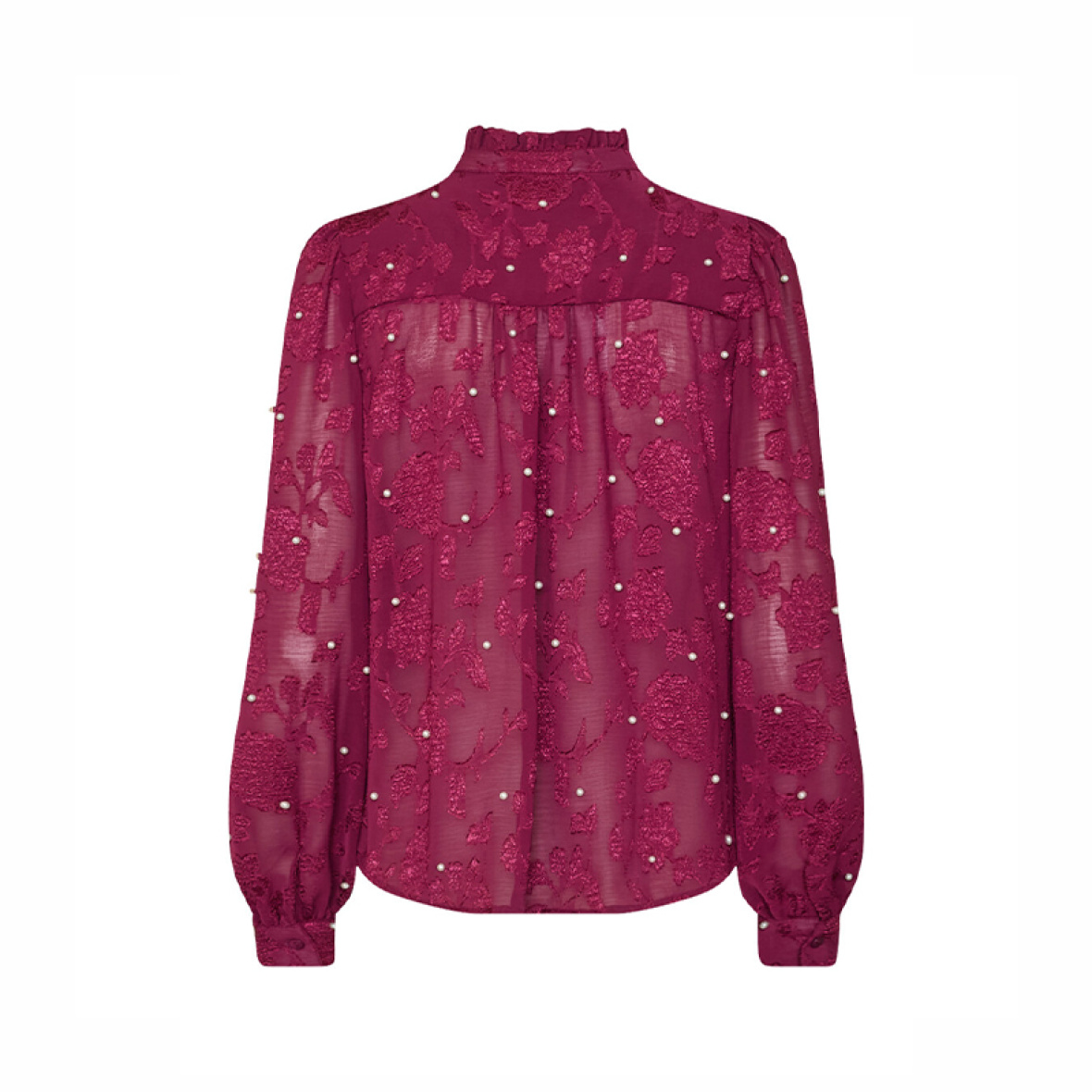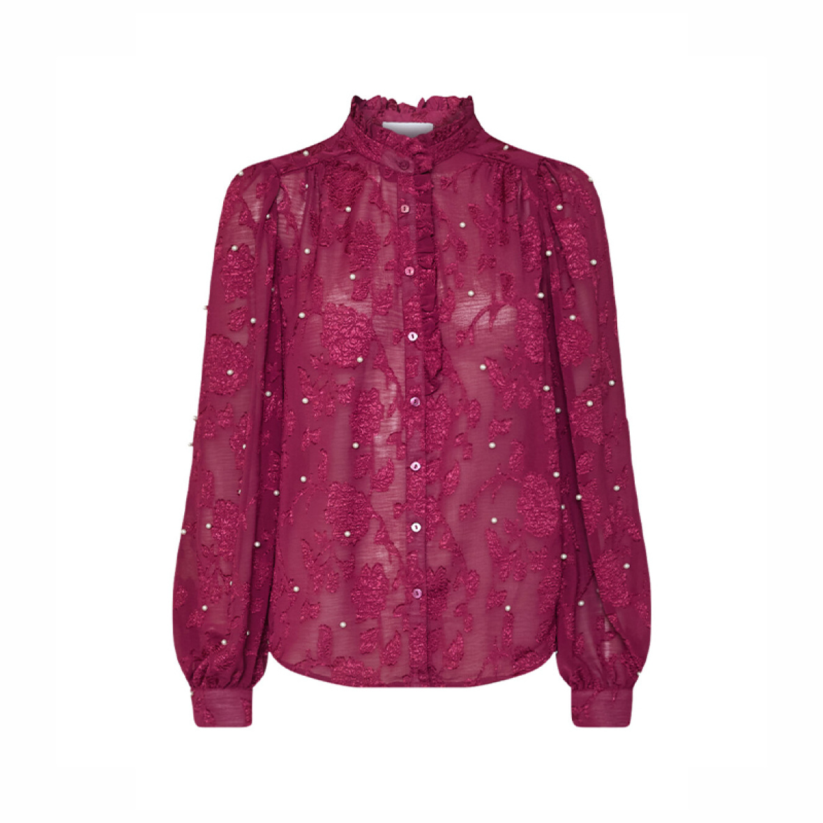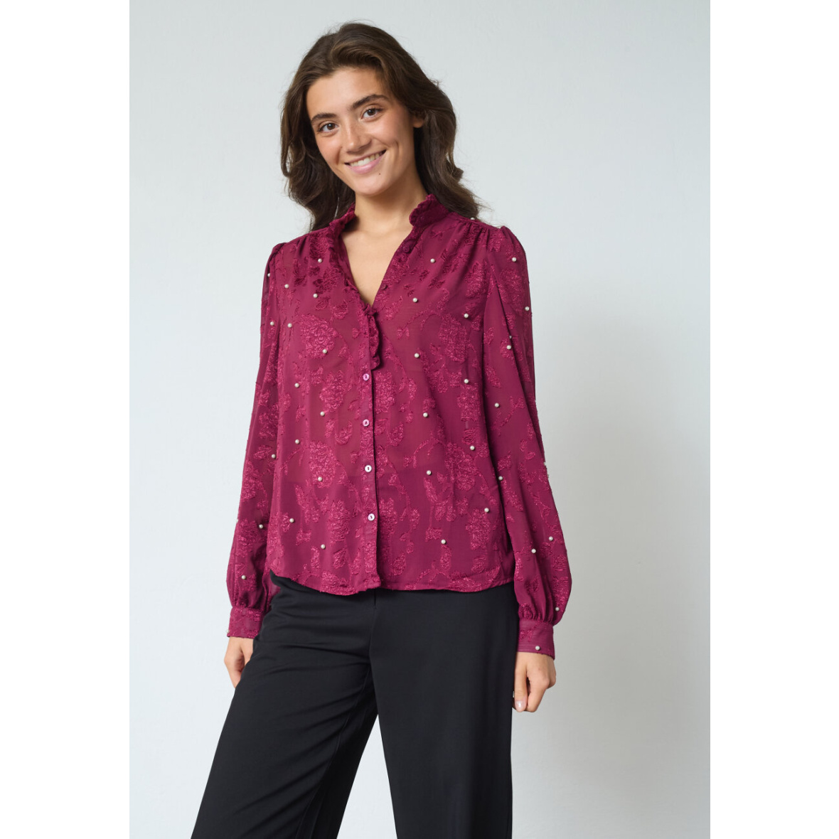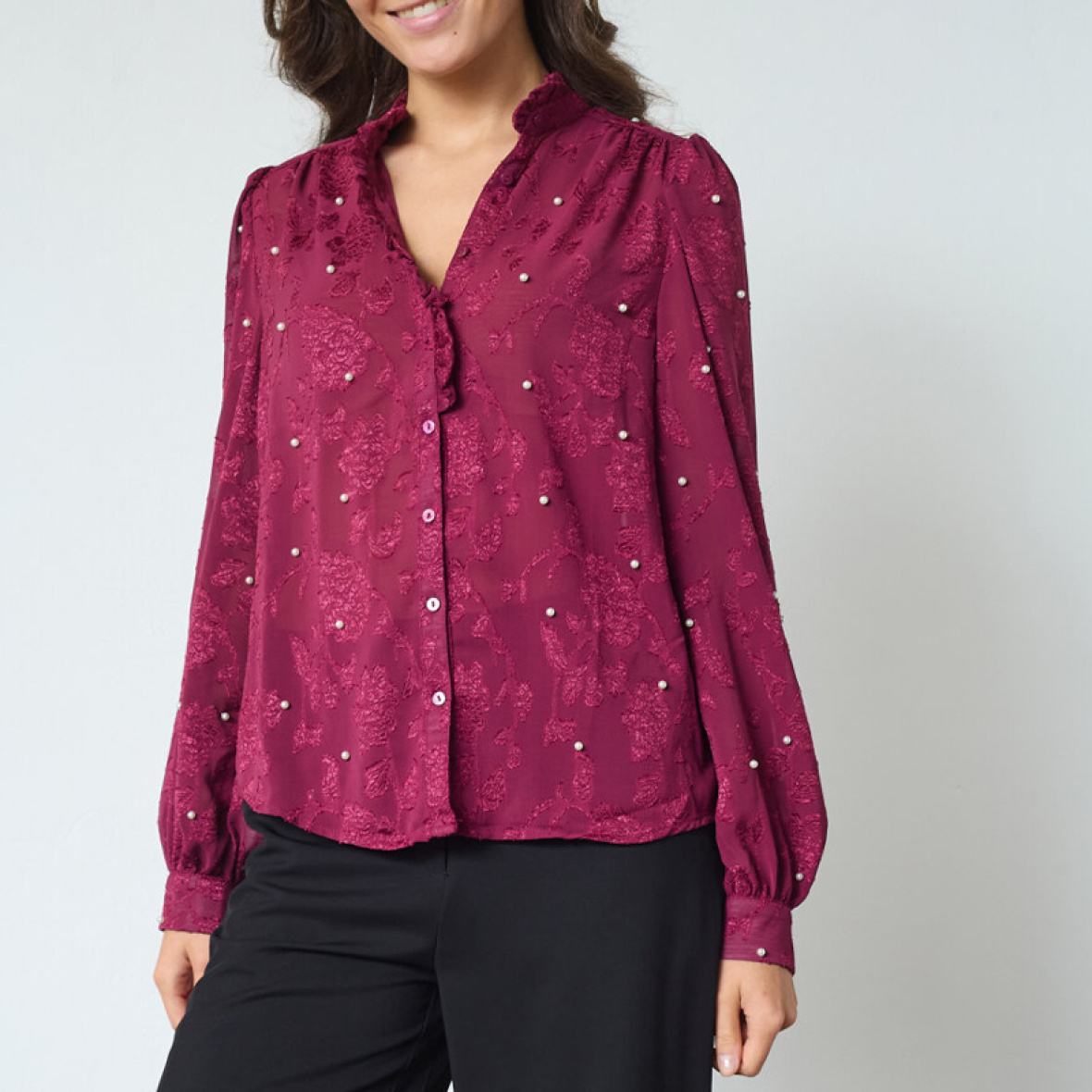 Virsa-sh13 er en elegant bordeaux skjorte med broderinger, der giver et eksklusivt udtryk.