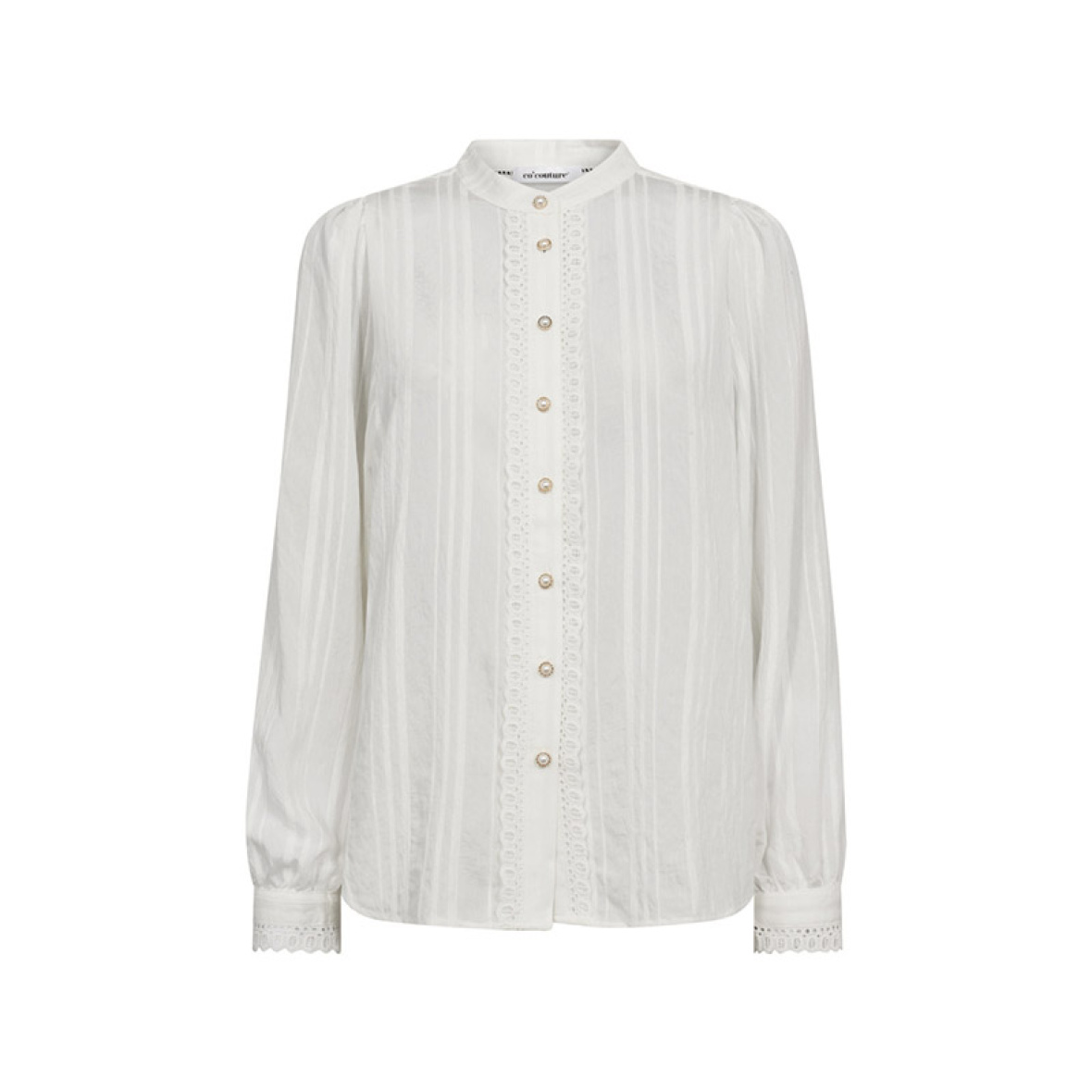 Langs knapstolpen prydes skjorten af delikate blondedetaljer og små perlemorsknapper, der tilfører et sofistikeret udtryk.