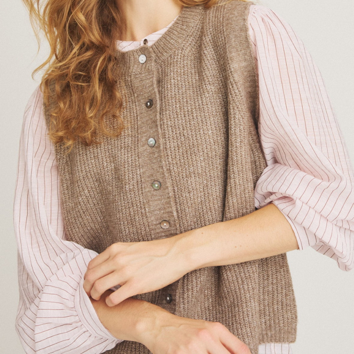 Fin strikvest med smukke knapper foran, lavet i en blød og behagelig kvalitet.