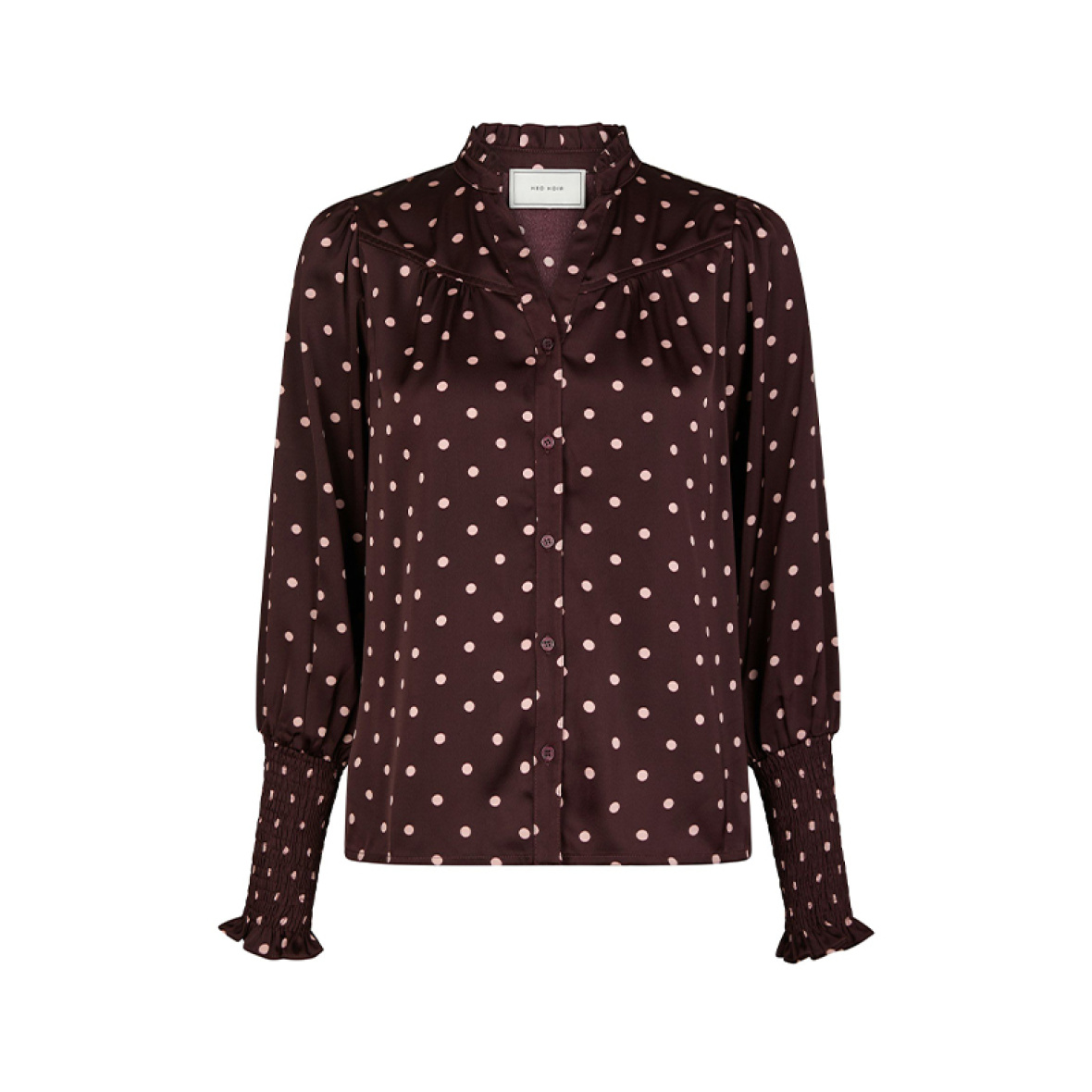 En feminin bluse fra Neo Noir med lange ærmer og et smukt, flatterende prikket mønster.