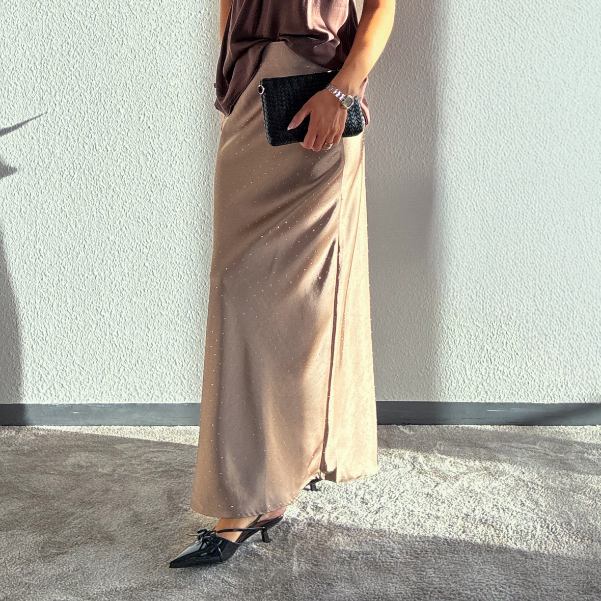 Nederdelen har en let glans og et elegant fald, som giver et feminint og sofistikeret udtryk.