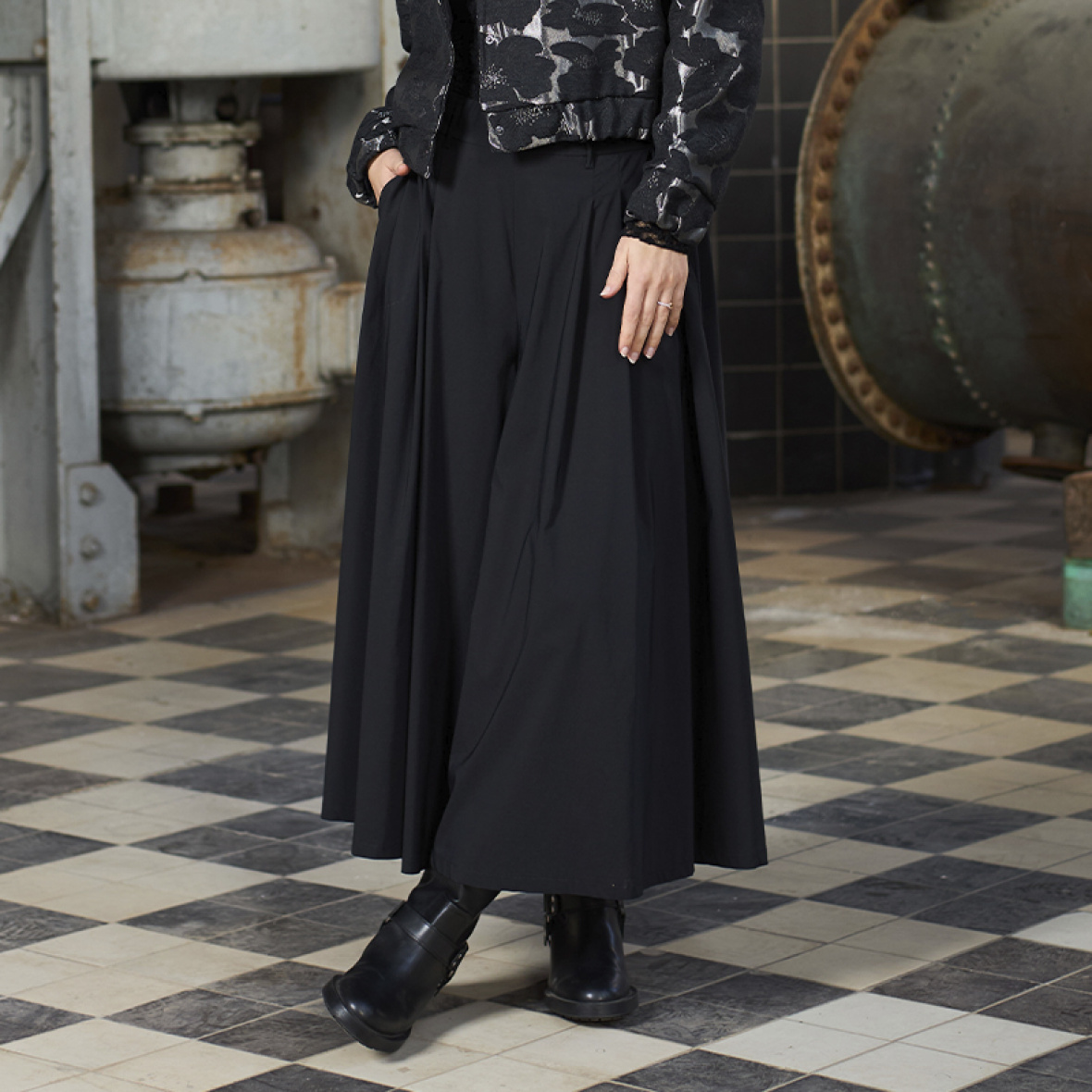 Sorte bukser med ekstra vide ben og et elegant, flowy fald, der næsten giver fornemmelsen af en nederdel.