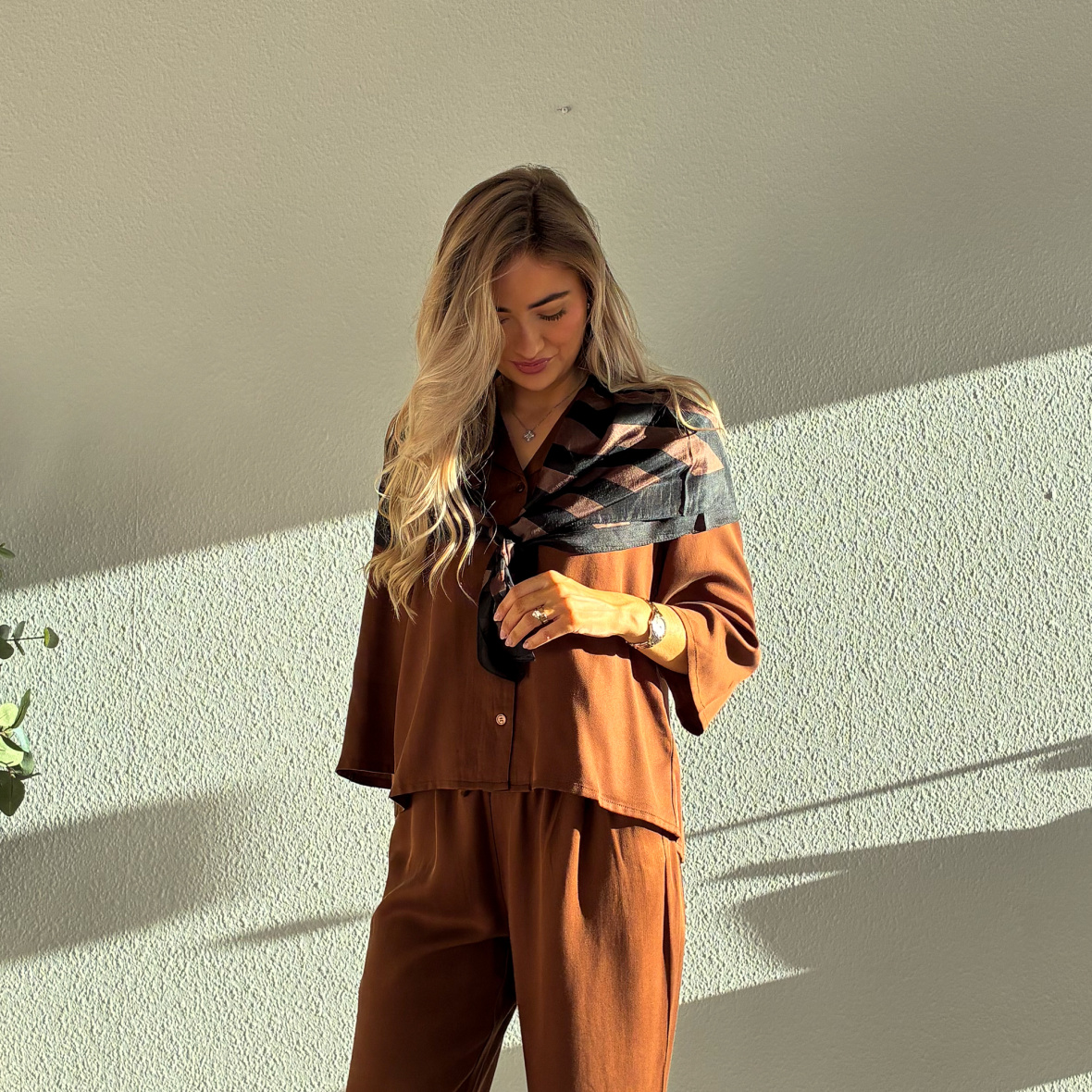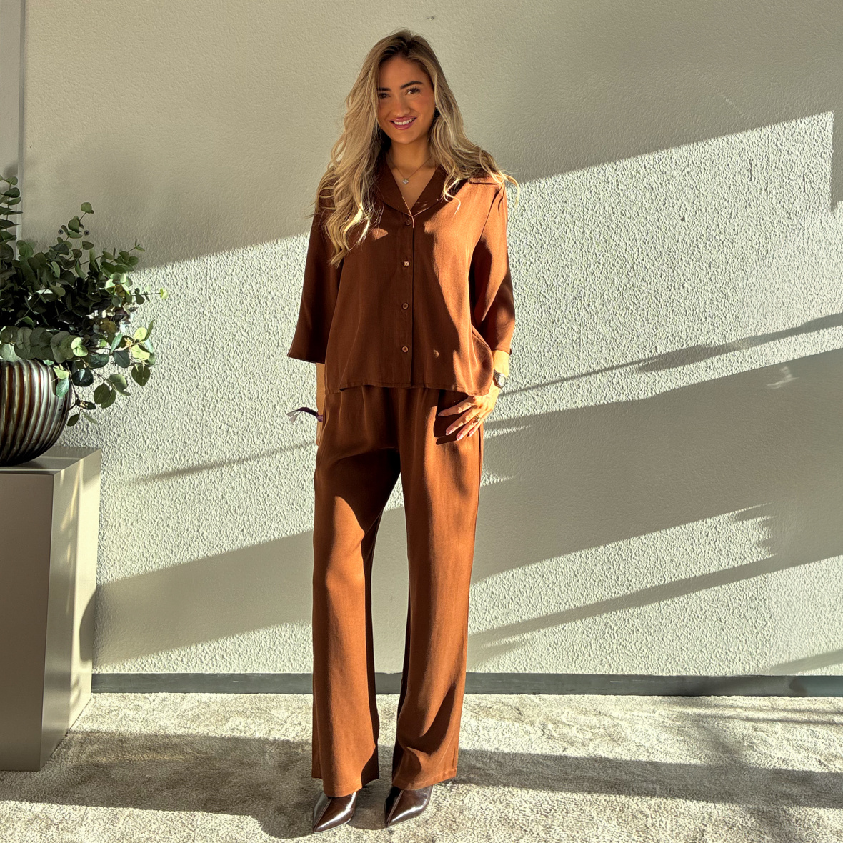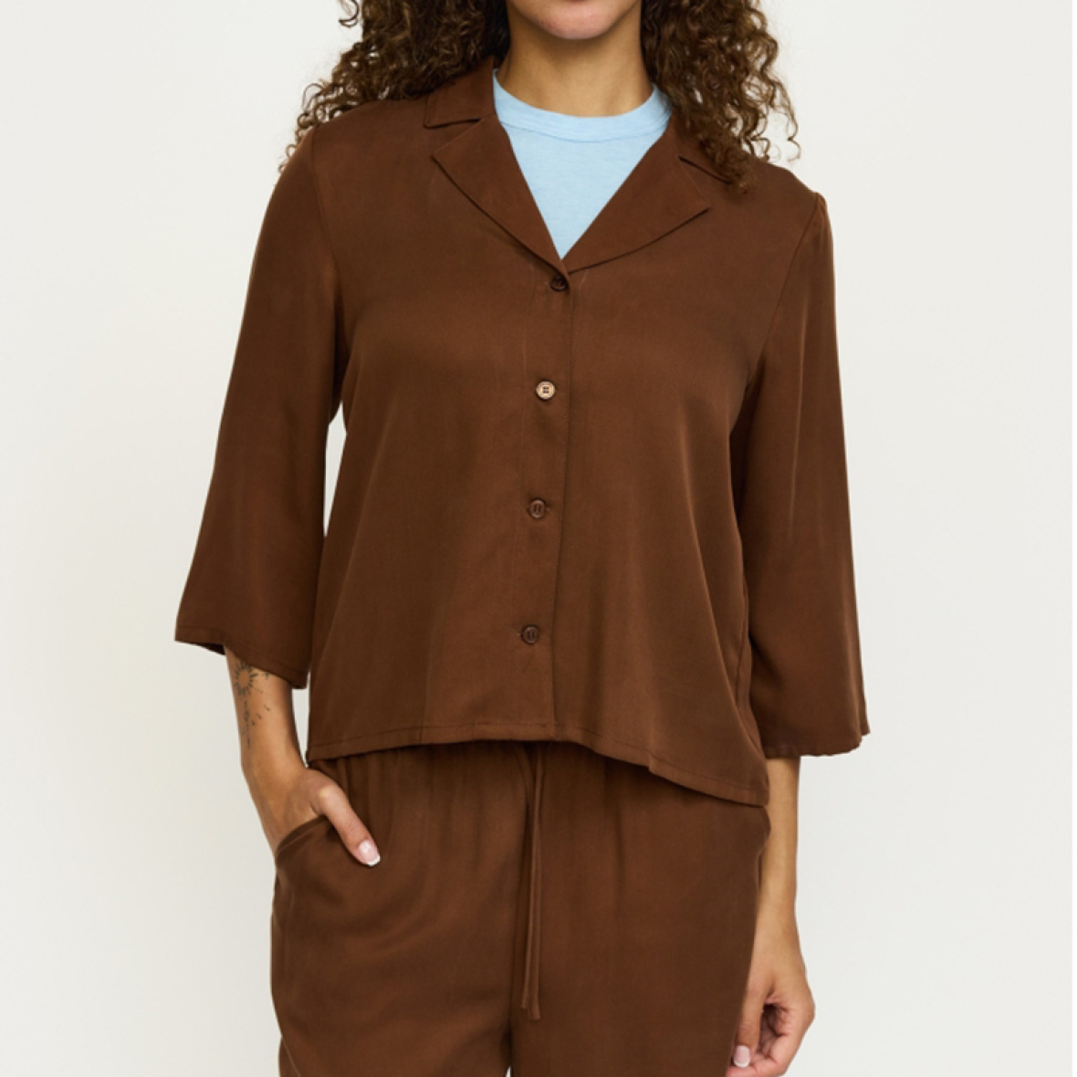 Skjorten har et loose fit og er perfekt med de matchende bukser som et sæt.