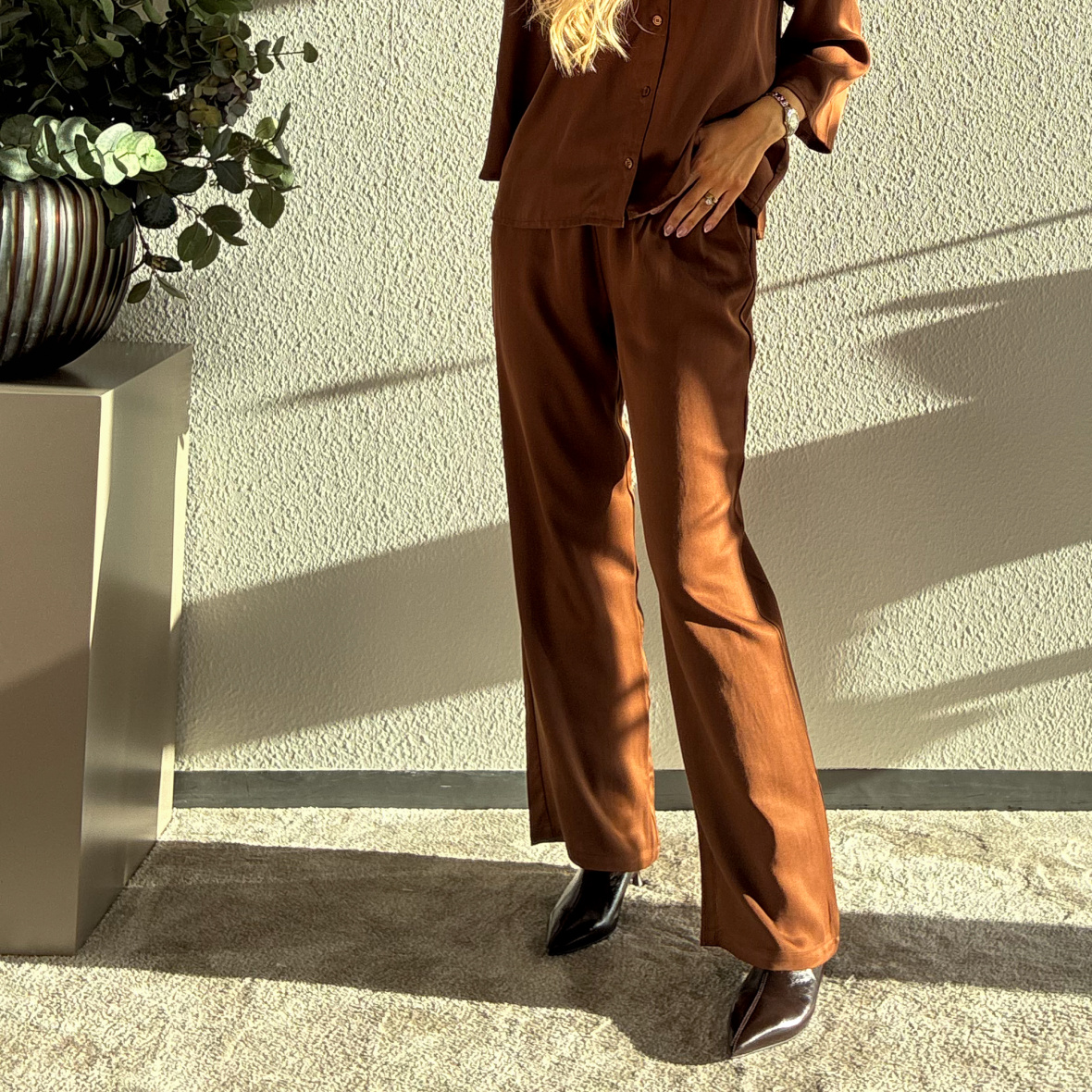 Style bukserne med matchende skjorte for et cool sæt.