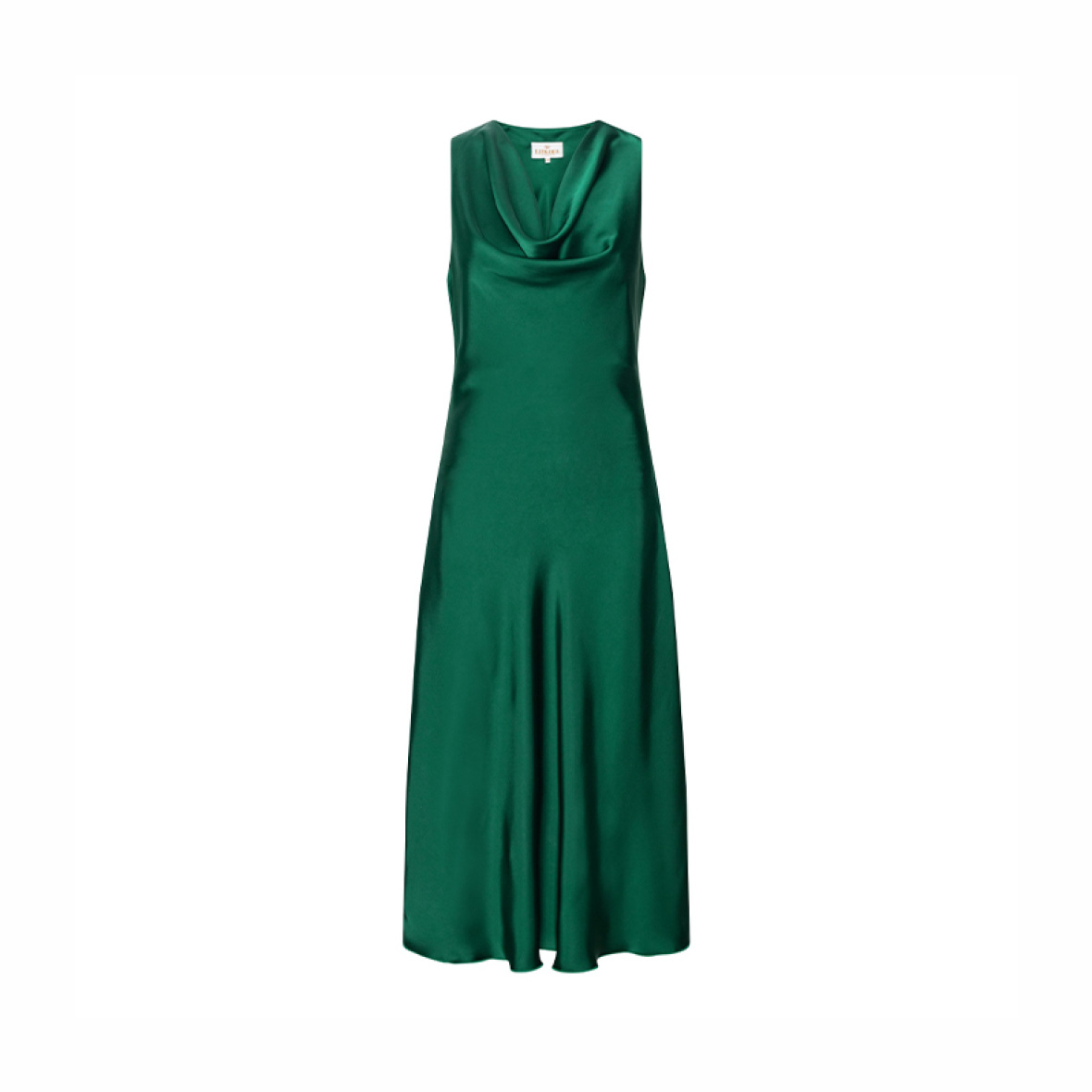 The Flow kjole er en smuk kjole i blød satin, der falder flot og elegant.
