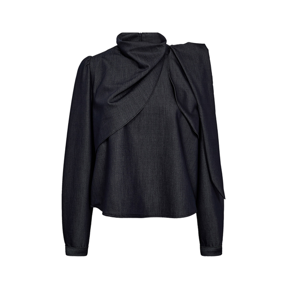Elegant bluse fra Gossia med en smuk tørklæde-detalje foran.