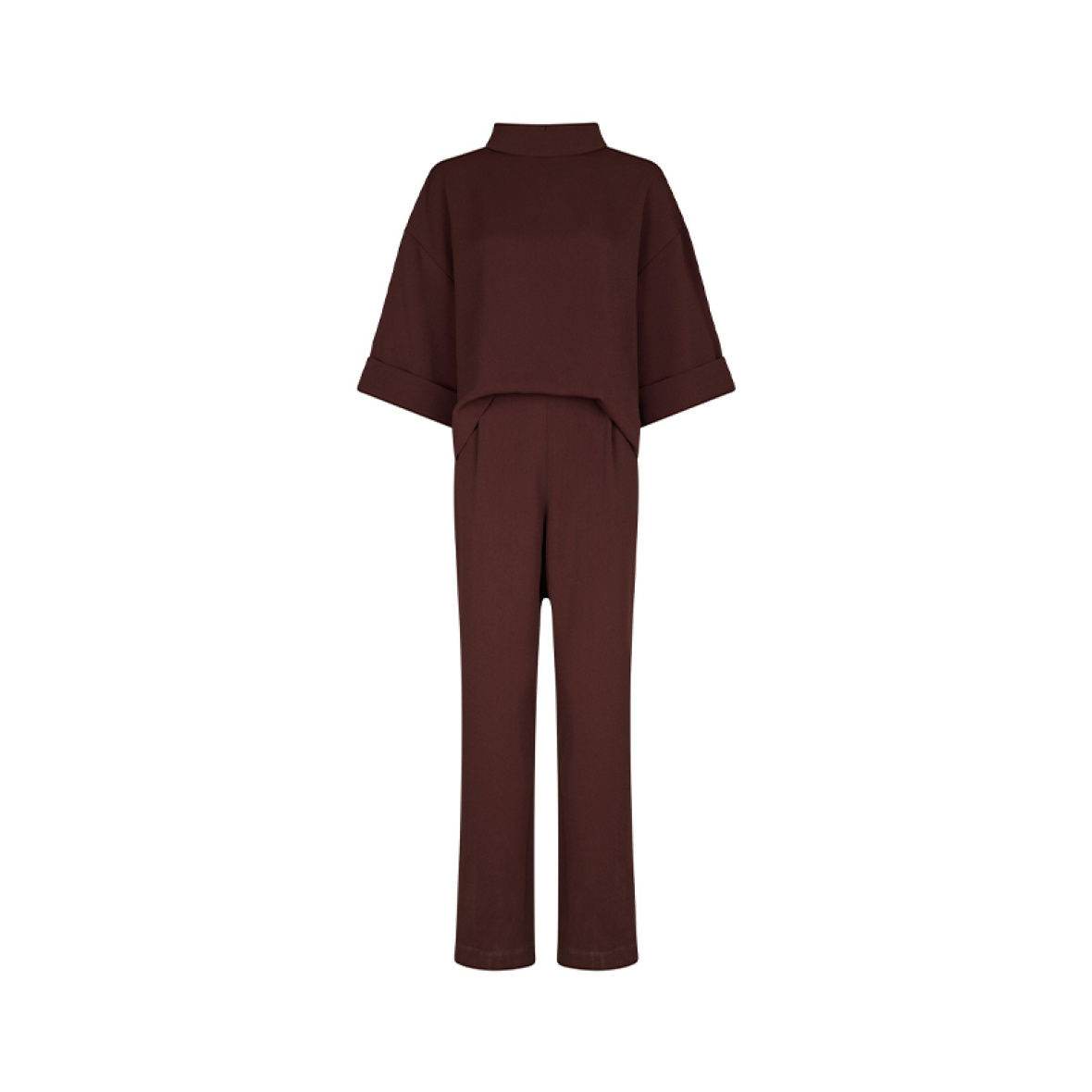 Buksedragten har usynlige lommer og brede ben, som giver en flot silhuet.