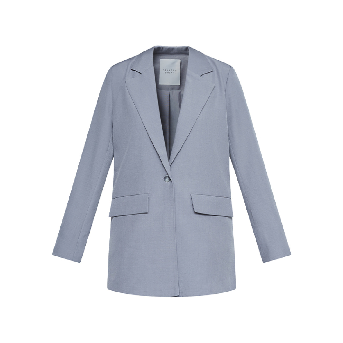 Viksa-bl er en klassisk blazer med reverskrave og knaplukning foran.