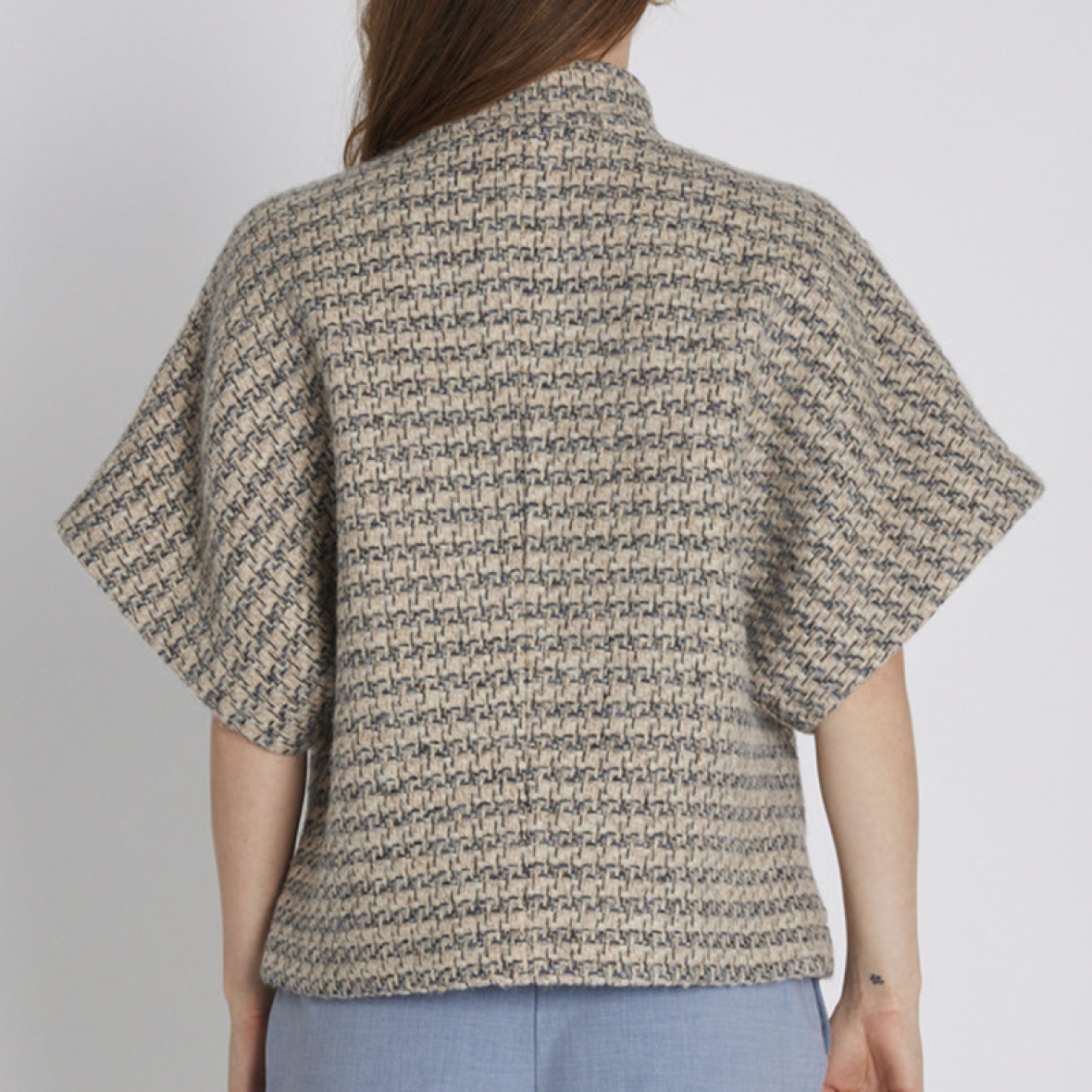 Pbo Bengala vest har et sofistikeret udtryk med en kort, boxy silhuet og en lille stående krave.