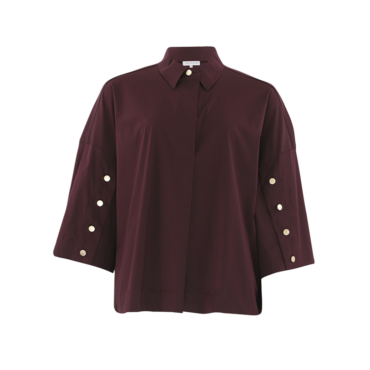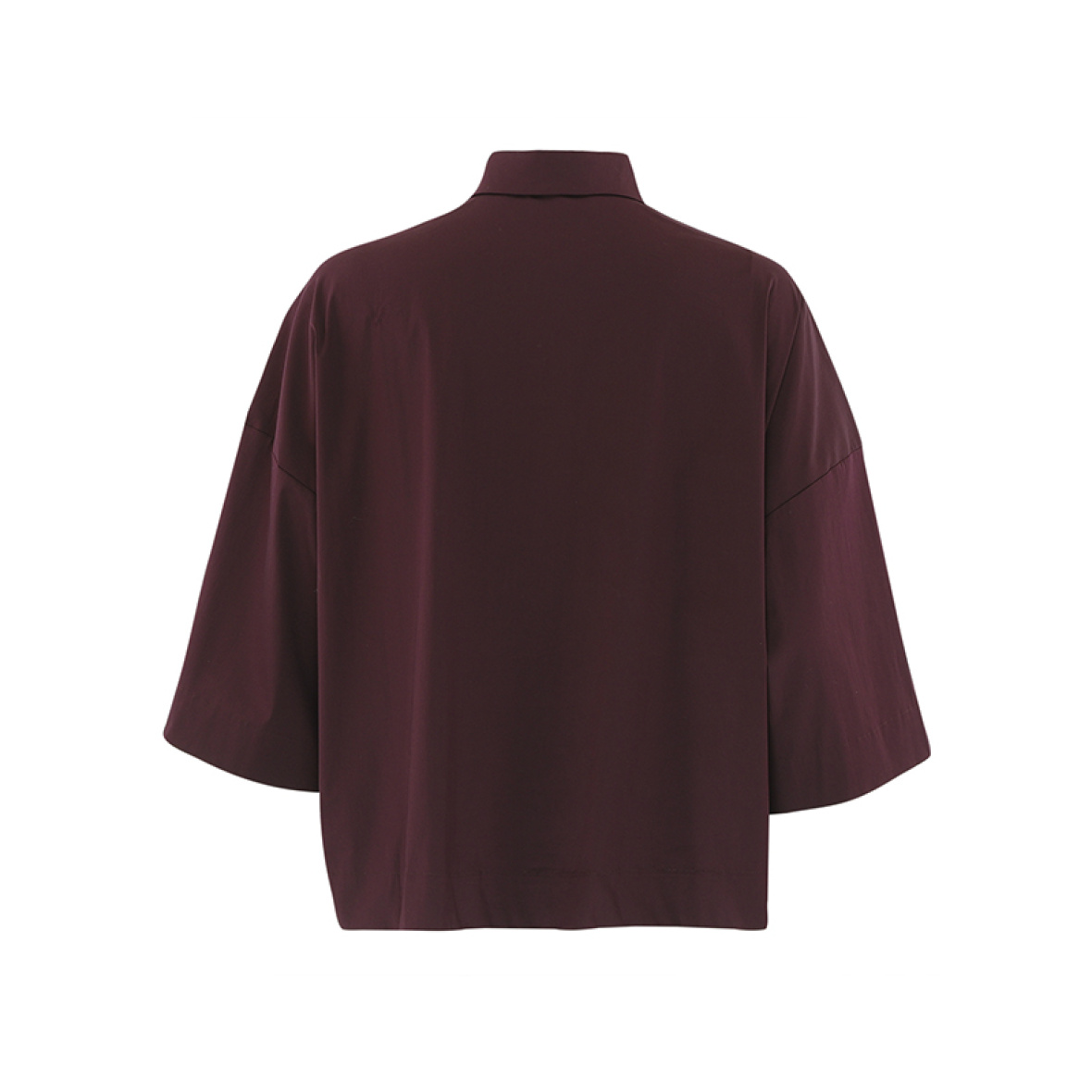 Rød oversize skjorte med krave og trekvarte ærmer.
