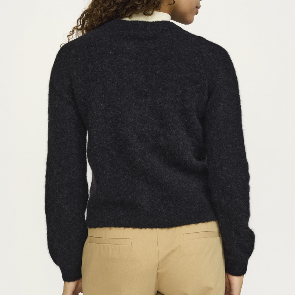 Cardiganen har rund hals med Rib kant, samt rib ved håndled og som afslutning på selve strikken.