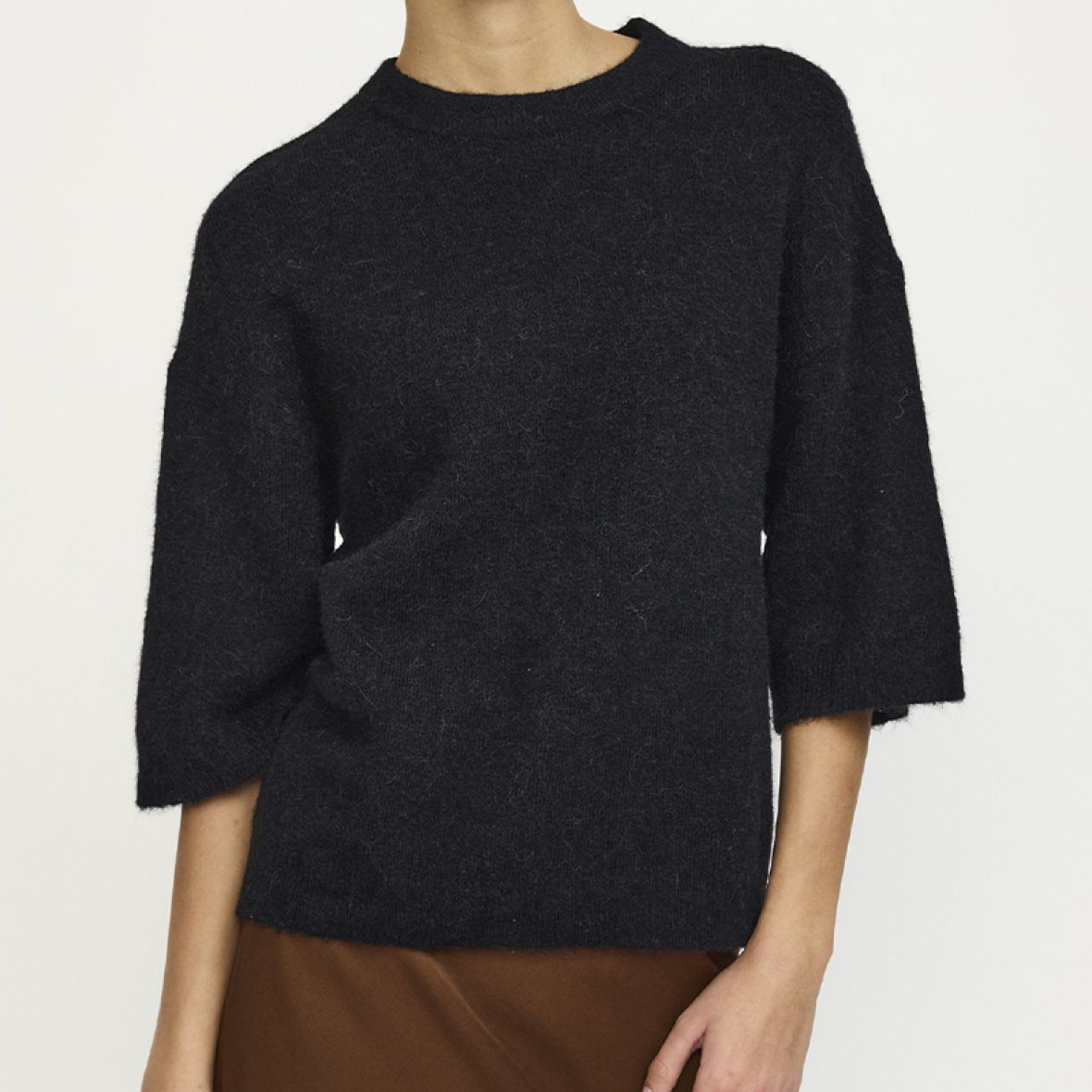 Den har en klassisk rund hals og halvlange ærmer, som giver et moderne og roligt udtryk.